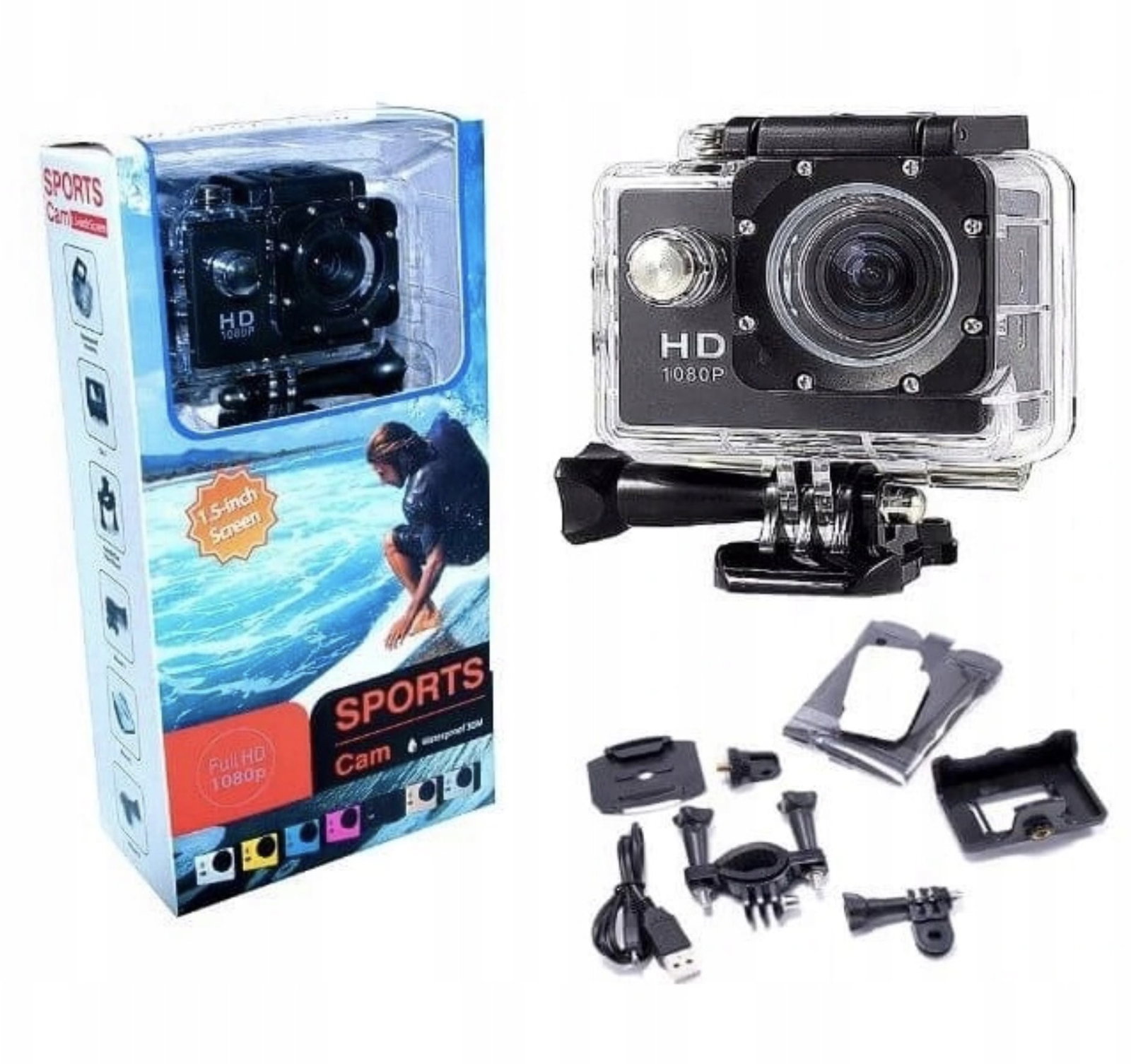 KAMERA SPORTOWA QIKtech FULL HD 1080P wodoodporna + akcesoria