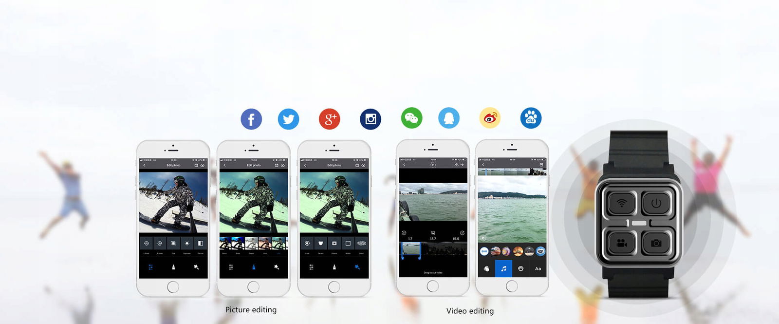 Kamera łączy się z aplikacją na telefon komórkowy, ułatwiając sterowanie ekranem nagrywania w czasie rzeczywistym. Nagrany materiał można edytować w dowolnym miejscu i czasie, a następnie udostępnić jednym kliknięciem.