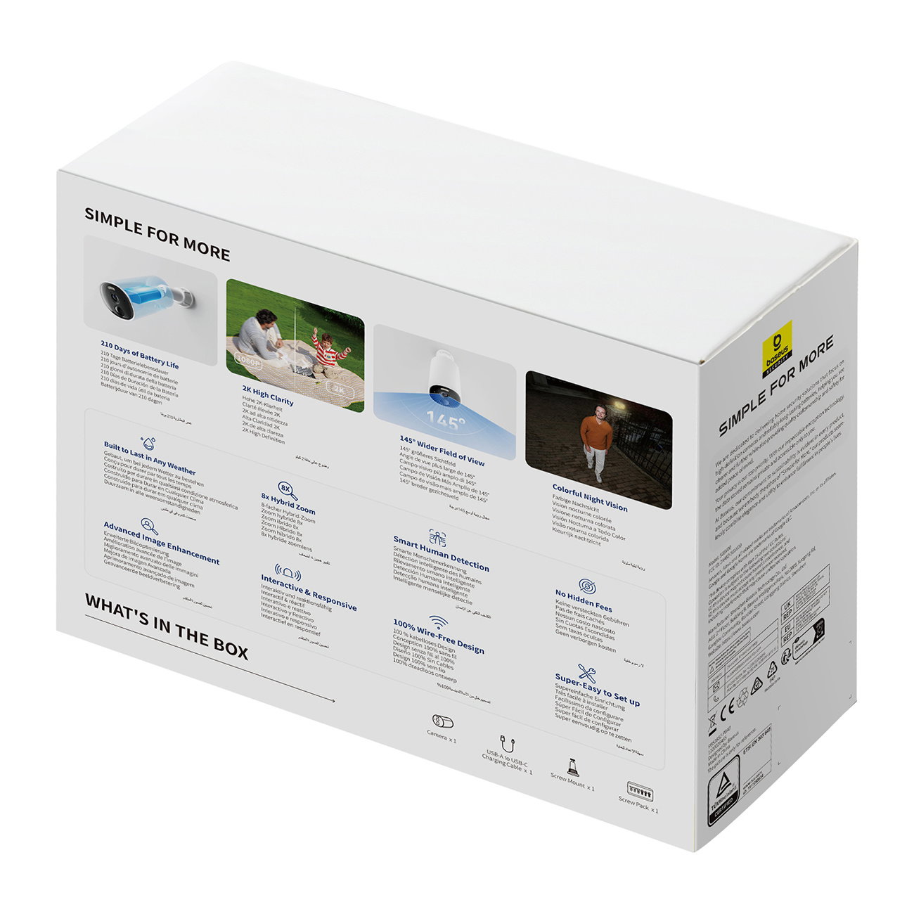 Kod produktu: 1030195Chroń swój dom z niezwykłą dokładnością dzięki kamerze Baseus Security B1 - bezprzewodowej, odpornej na warunki atmosferyczne i gotowej do pracy przez cały rok. Rejestruje obraz w rozdzielczości 2K, zapewniając perfekcyjne ujęcia nawet z odległości 8 metrów - zarówno w dzień, jak i w nocy, dzięki kolorowemu trybowi nocnemu i reflektorowi 100 lm. Z polem widzenia 145deg obejmuje całą posesję, eliminując martwe strefy. Bateria 7800 mAh gwarantuje do 210 dni pracy bez ładowania, a dzięki wbudowanej pamięci 8 GB możesz przechowywać nagrania lokalnie - bez opłat abonamentowych. Kamera pozwala precyzyjnie definiować strefy aktywności i prywatności, a inteligentna detekcja z powiadomieniami w czasie rzeczywistym informuje tylko o tym, co naprawdę ważne. Dodatkowo komunikacja dwukierunkowa, certyfikowane szyfrowanie certyfikowane przez TÜV i łatwy montaż bez kabli czynią B1 kompleksowym rozwiązaniem dla nowoczesnego domu.Najważniejsze cechy: