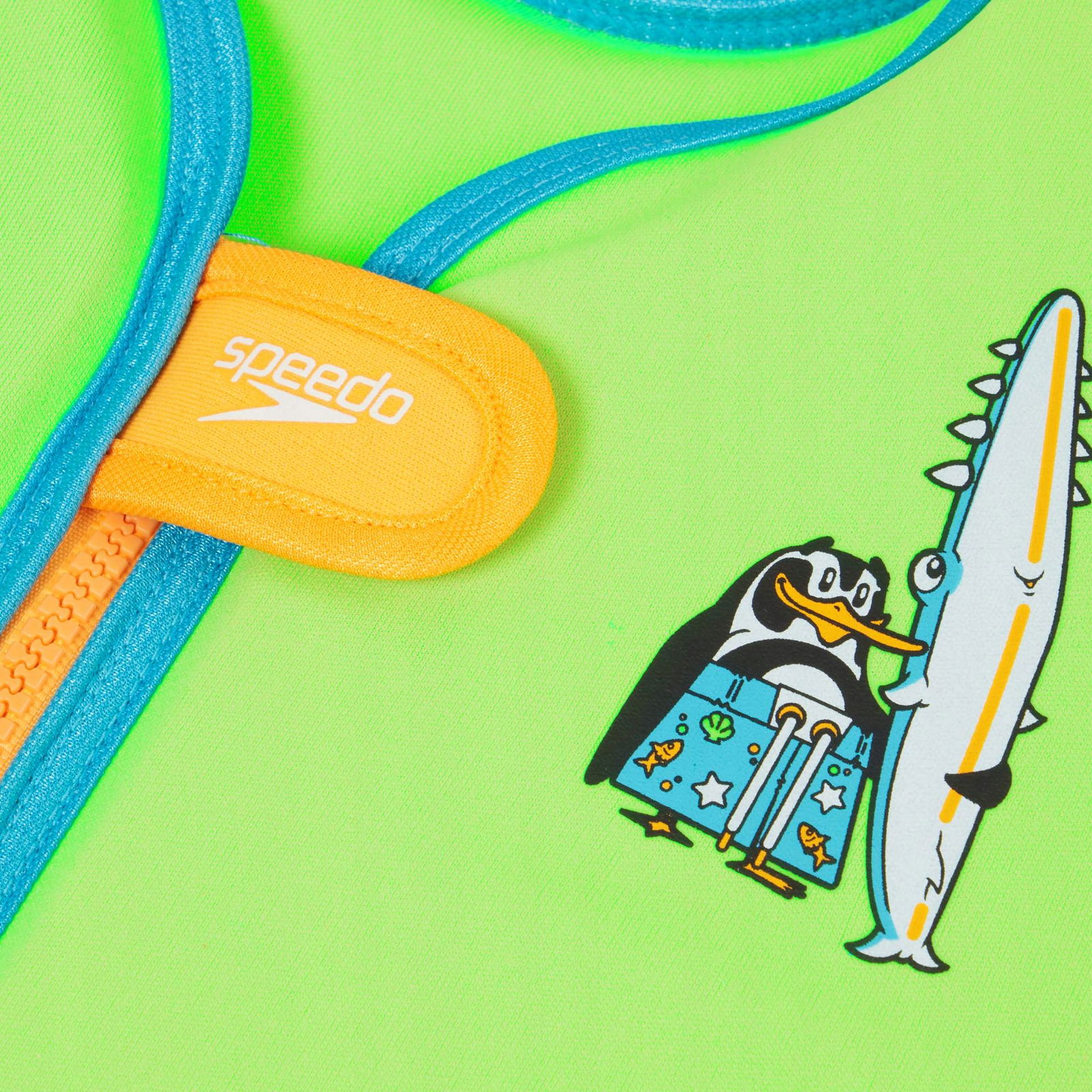 SPEEDO AKCESORIA PŁYWACKIE JUNIOR PRINTED FLOAT VEST IUCHIMA AZURE BLUE/FLURO GREEN 8-1225214686 1-2YR