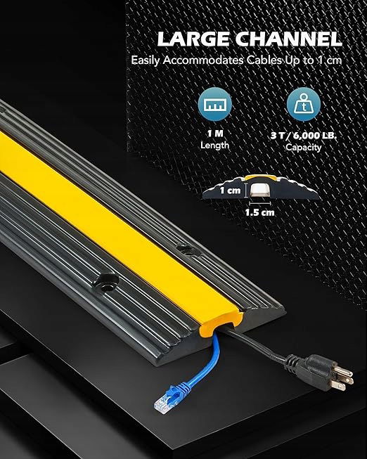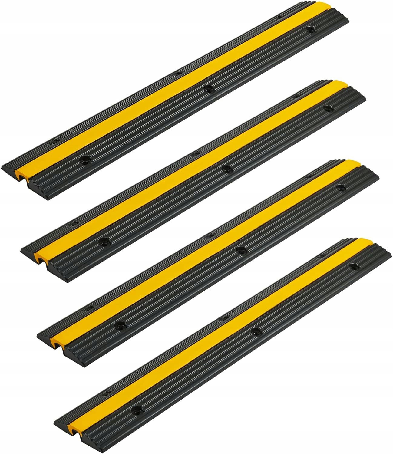 Mostek kablowy, 4 sztuki, 1 kanał, do podłogi, prowadnica kabla podłogowego, 100 x 15 x 3 cm, ochrona przed przejechaniem, do kabla 3T, osłona kabla do parkingu, magazynów