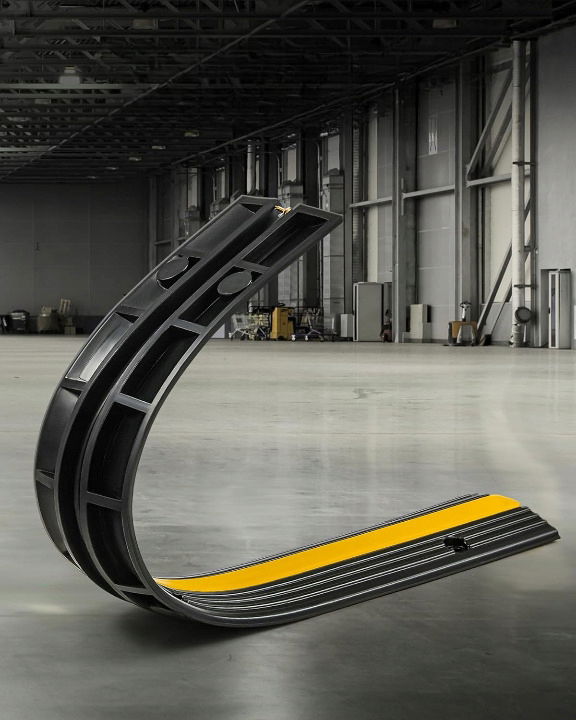 Wysoce widoczne połączenie kolorów - czarny i jasnożółty. Gumowe paski EPDM zwracają uwagę na rampy zabezpieczające kable w nocy lub przy słabym oświetleniu.