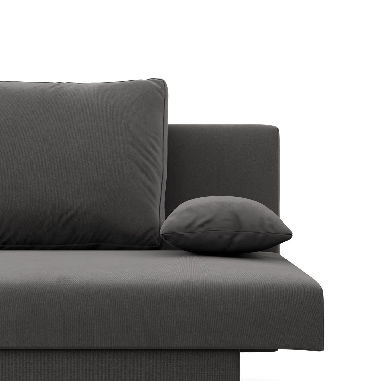 Kanapa, funkcja spania, Hugo, 191x91x92 cm, ciemny szary. Zadbaj o kącik wypoczynkowy z komfortową kanapą HUGO! Nowoczesna kanapa z wypełnieniem sprężynowym świetnie sprawdzi się w każdym salonie lub pokoju dziennym, oszałamiając swoją estetyką. Klasyczna forma mebla połączona z funkcjonalnymi rozwiązaniami technologicznymi w postaci luźnych poduszek i pojemnika na pościel będzie idealną ozdobą i jednocześnie miejscem spotkań z rodziną i przyjaciółmi.