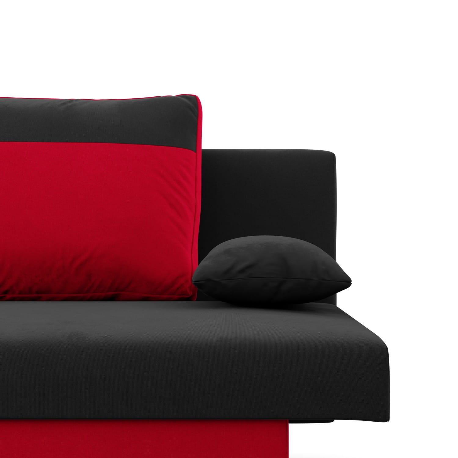 Kanapa, funkcja spania, Hugo, 191x91x92 cm, czarny, czerwony | TYLETEGOTU