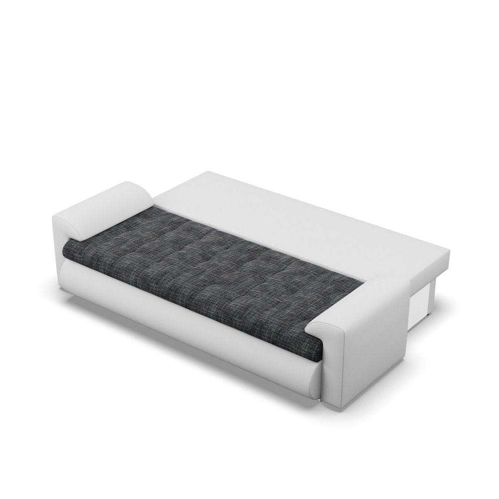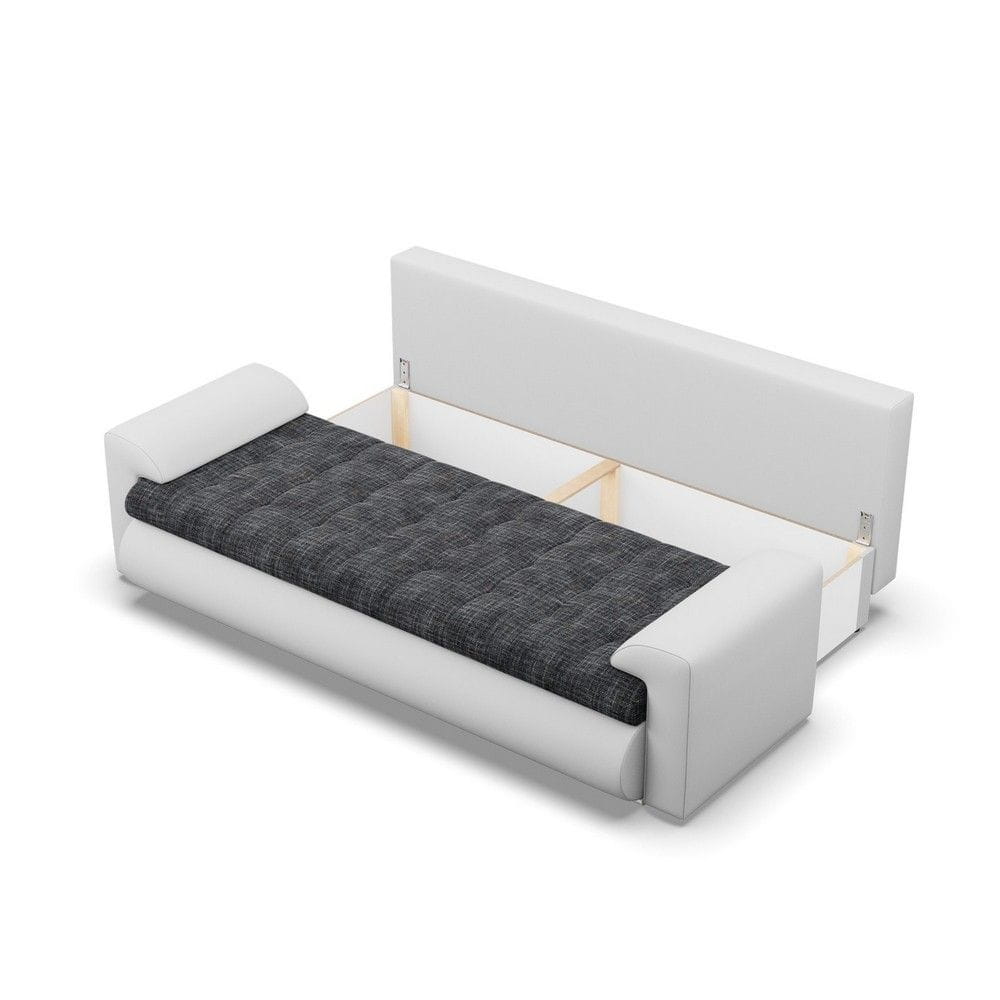 Kanapa rozkładana, Bosco, plecionka, ekoskóra, 222x96x92 cm, ciemny szary, biały