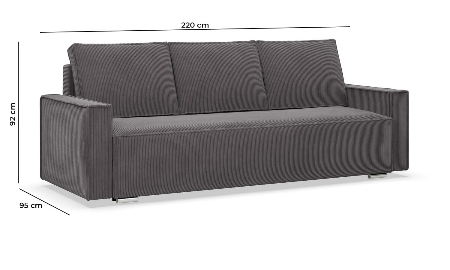 Kanapa rozkładana, sztruks, Union, 220x95x92 cm, ciemny szary. Kanapa z funkcją spania, którą pokrywa trwała, przyjemna w dotyku tkanina łącząca w sobie komfort i elegancję. Dzięki starannie dobranym materiałom i dbałości o detale, dedykowana sofa stanie się centralnym elementem Twojego wnętrza, dodając mu wyjątkowego uroku.