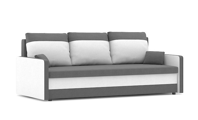Kanapa trzyosobowa, funkcja spania, Milton, 205x90x75 cm, biel, szary. Zadbaj o kącik wypoczynkowy z komfortową kanapą MILTON! Nowoczesna kanapa z wypełnieniem piankowym świetnie sprawdzi się w każdym salonie lub pokoju dziennym, oszałamiając swoją estetyką. Klasyczna forma mebla połączona z funkcjonalnymi rozwiązaniami technologicznymi w postaci podłokietnika, luźnych poduszek i pojemnika na pościel będzie idealną ozdobą i jednocześnie miejscem spotkań z rodziną i przyjaciółmi.