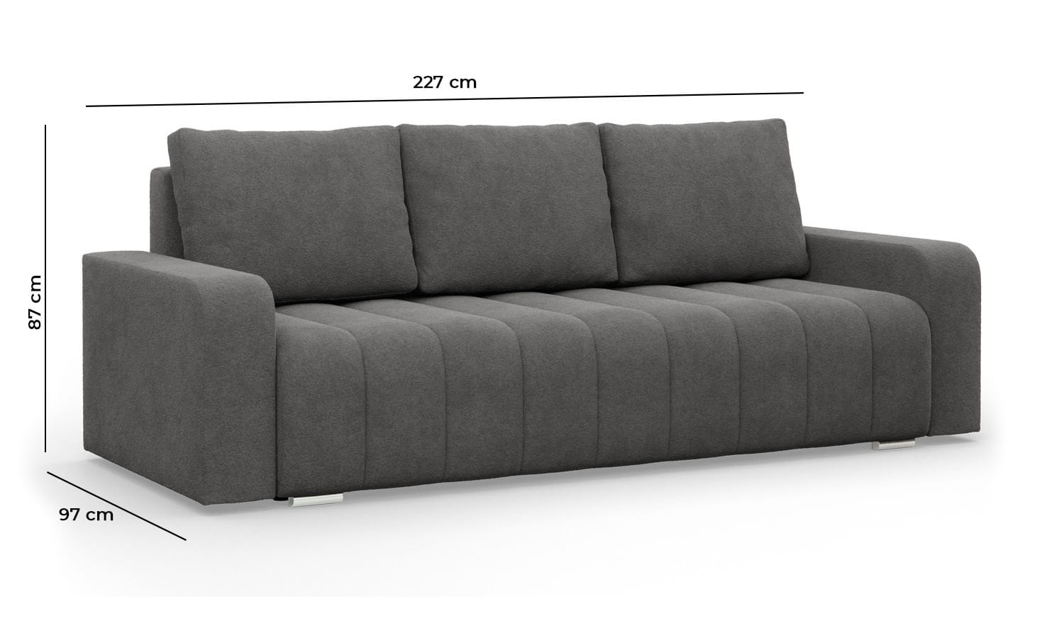 Kanapa z funkcją spania, Velluto, 227x97x87 cm, ciemny szary