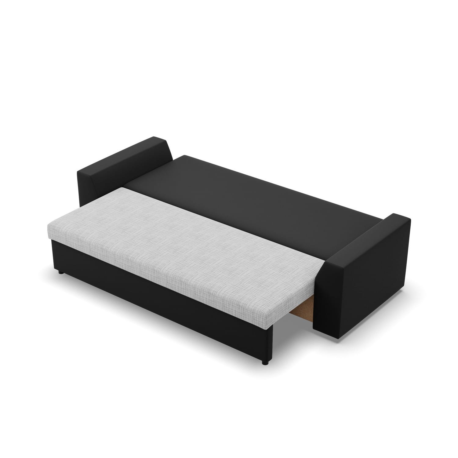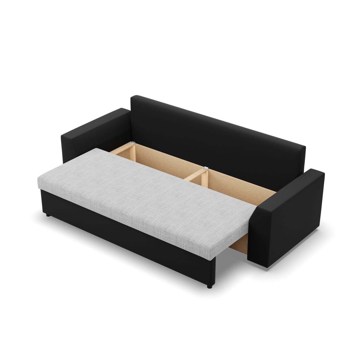 Kanapa rozkładana z funkcją spania, Viktor, ekoskóra, 232x92x92 cm, czarny, szary. Zadbaj o kącik wypoczynkowy z komfortową kanapą VIKTOR! Nowoczesna kanapa z wypełnieniem piankowym świetnie sprawdzi się w każdym salonie lub pokoju dziennym, oszałamiając swoją estetyką. Klasyczna forma mebla połączona z funkcjonalnymi rozwiązaniami technologicznymi w postaci podłokietnika, luźnych poduszek i pojemnika na pościel będzie idealną ozdobą i jednocześnie miejscem spotkań z rodziną i przyjaciółmi.
