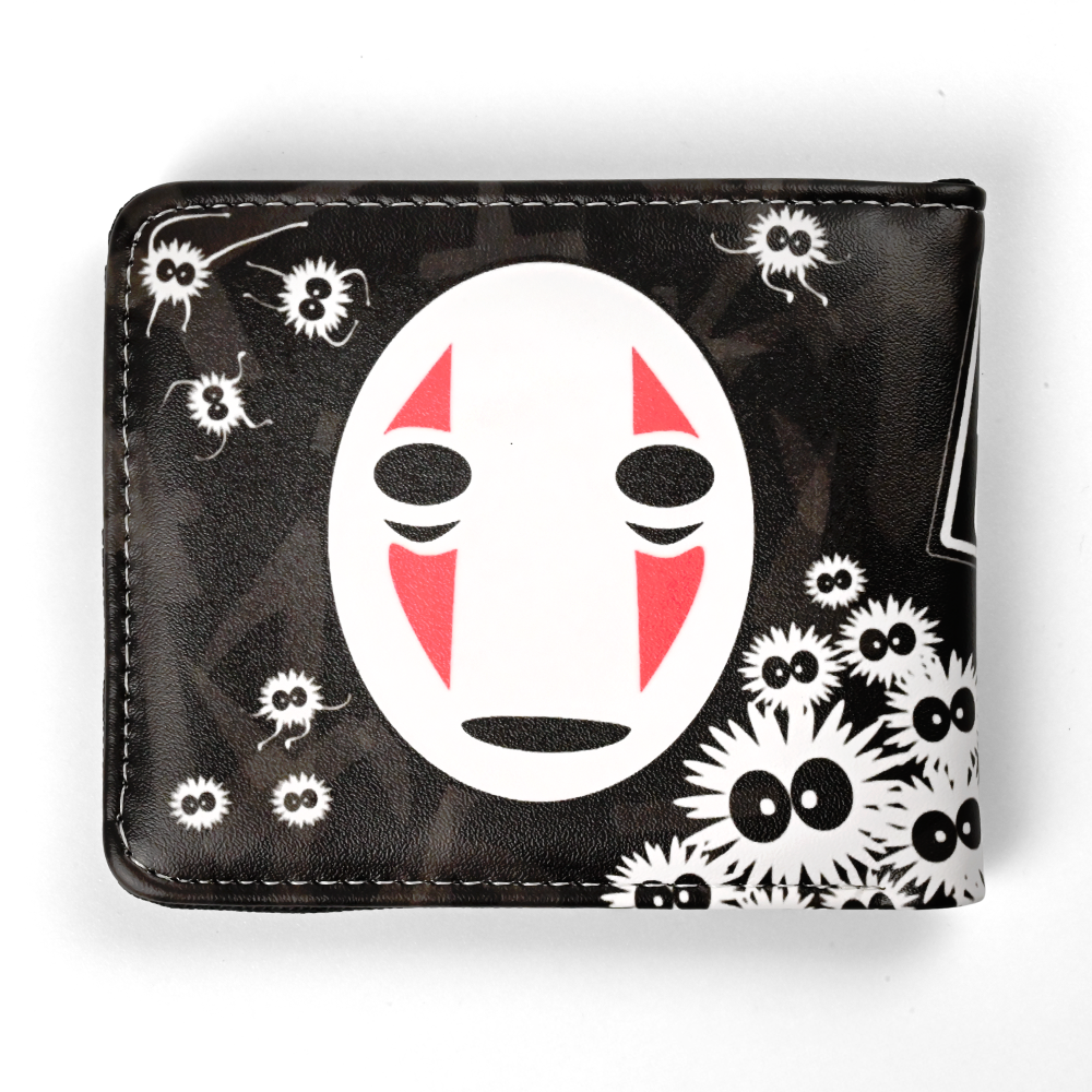 W parującym blasku Łaźni i w ciszy korytarzy pełnych duchów portfel Kaonashi przenosi klimat Spirited Away prosto do Twojej codzienności—idealny dla fanów, którzy kochają tę tajemniczą, lekko niepokojącą aurę filmu. Ma poręczne 13 cm, więc spokojnie mieści się w kieszeni, ale nadal robi wrażenie i od razu daje „ten” ghibliowy vibe. Gładka czarna ekoskóra ma mocny, kontrastowy nadruk: z jednej strony centralnie widać kultową białą maskę Kaonashiego z czerwonymi znakami i głębokimi czarnymi oczami, które świetnie odcinają się od tła. Dookoła rozsypane są białe duszki sadzy—jak małe kleksy, które dodają całości tej charakterystycznej, uroczej nuty. Druga strona jest bardziej graficzna: dominuje intensywny czerwony okrąg z białym wzorem przypominającym przeszycia w kształcie „X”, obok którego pojawia się blok stylizowanych japońskich znaków, jak z filmowego plakatu. Równe przeszycia na krawędziach ładnie spinają całość. W środku jest praktycznie: duże okienko na dowód, miejsca na karty, przegroda na banknoty i kieszonka na suwak na monety lub drobiazgi. Na konwent, do kolekcji albo po prostu na co dzień—ten portfel aż się prosi, żeby wskoczyć do Twojego zestawu.
