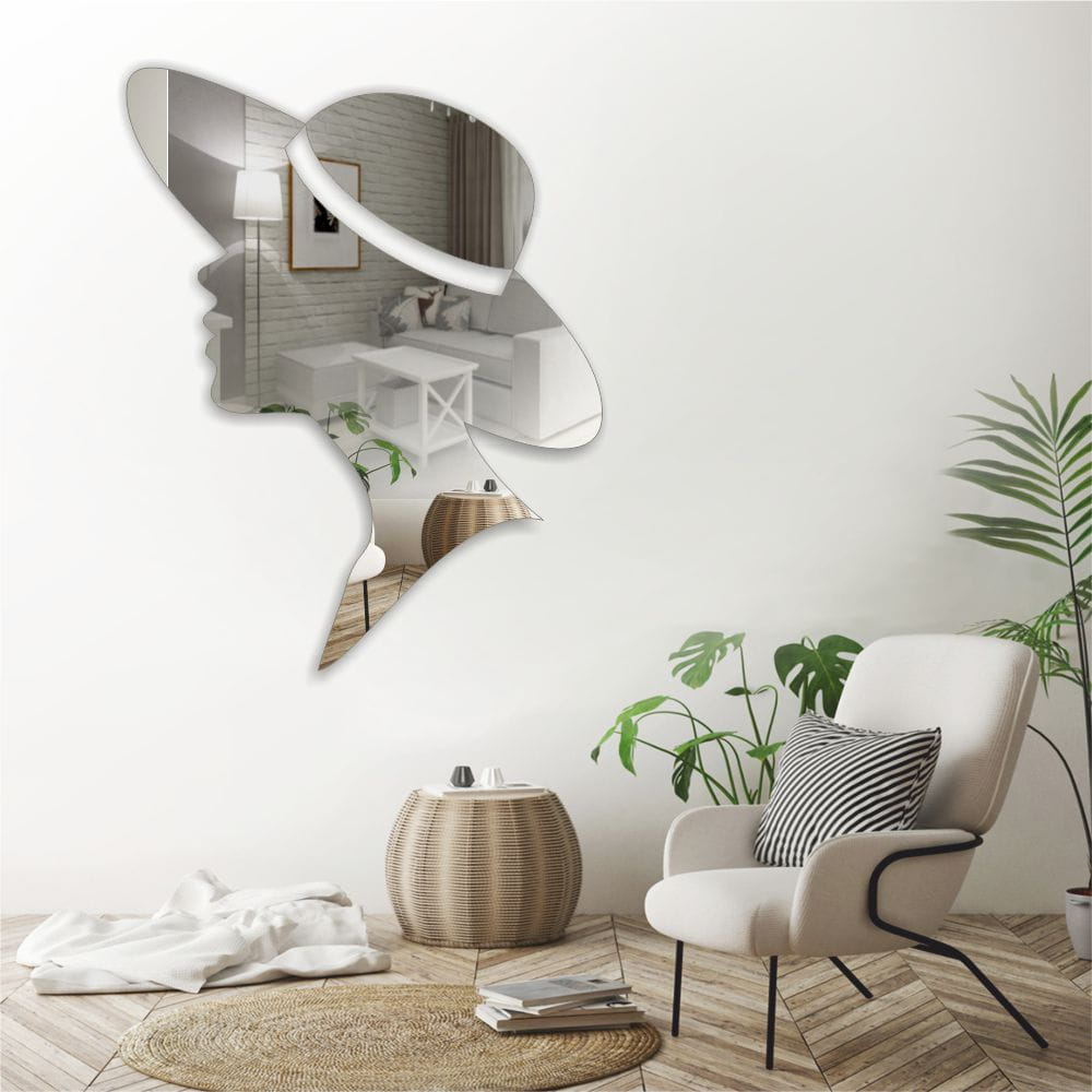 Kapeluszowa Musa to dekoracyjne lustro akrylowe o eleganckim konturze kobiety w kapeluszu — stylowa i lekka dekoracja ścienna, która nada wnętrzu artystycznego charakteru i optycznie powiększy przestrzeń.