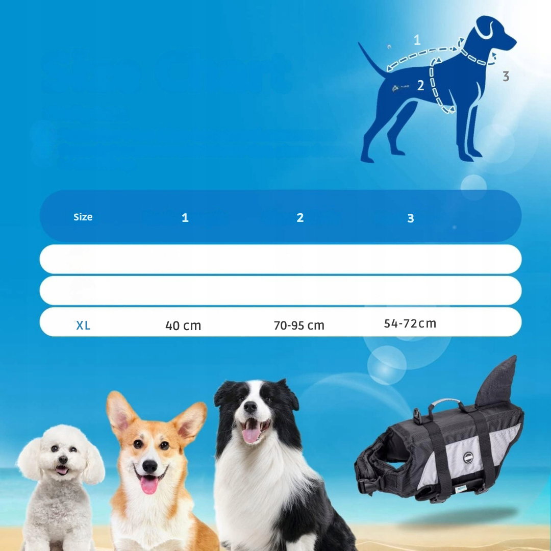 - Rozmiar: XL- klatka piersiowa: 70-95 cm; szyja: 54-72 cmprzed zakupem należy zmierzyć klatkę piersiową psa w najszerszym miejscu. Jeśli wynik pomiaru znajduje się pomiędzy dwoma rozmiarami, zaleca się wybór większego rozmiaru, aby zapewnić psu komfort i odpowiednią wyporność.