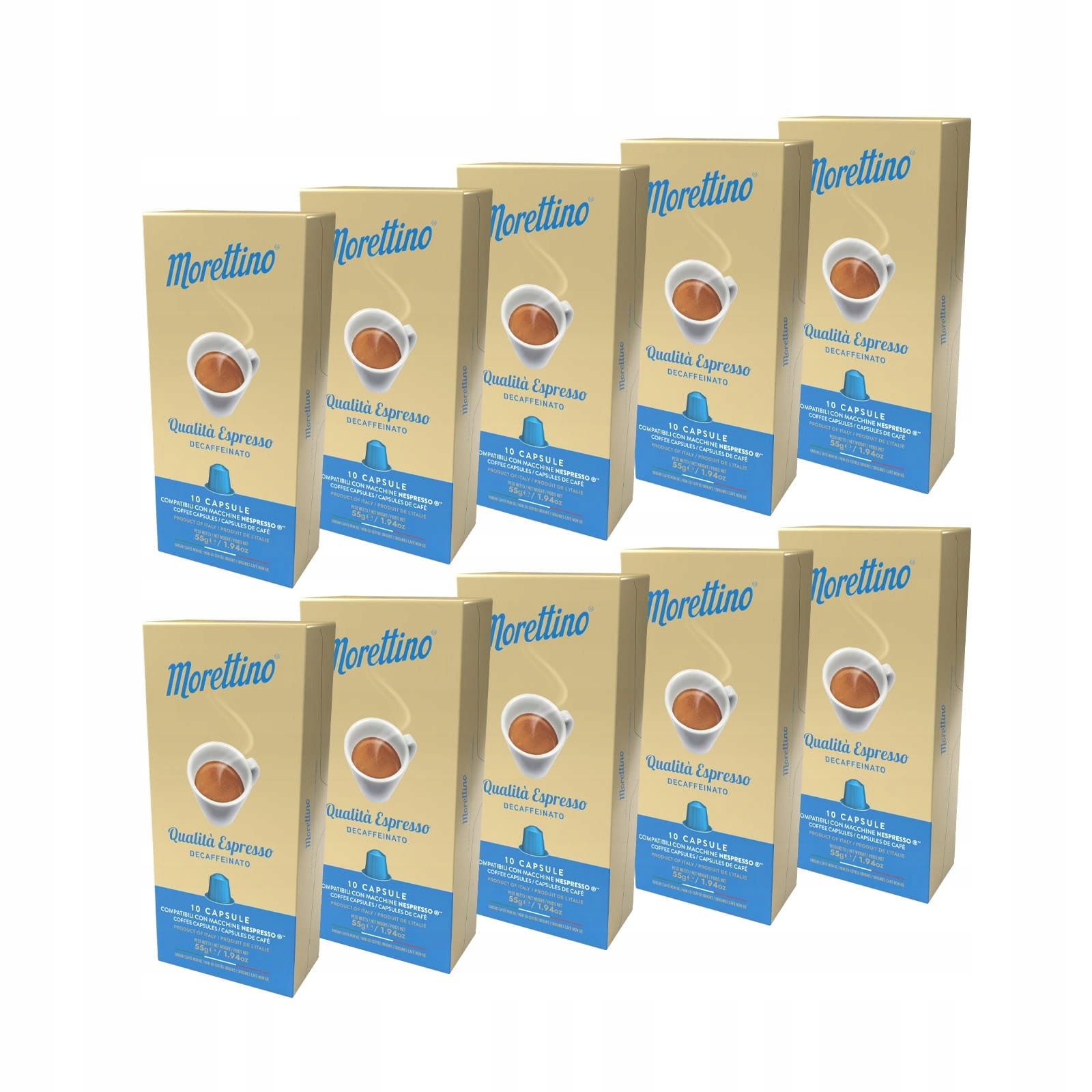 Klasyczna mieszanka Morettino „Qualità Espresso Decaffeinato”, teraz dostępna w kapsułkach kompatybilnych z systemem Nespresso*.