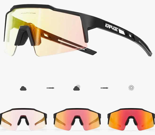 - Fotochromatyczne okulary rowerowe - te okulary rowerowe wykorzystują technologię fotochromową, soczewki są automatycznie wyraźniejsze lub ciemniejsze w odpowiedzi na intensywność promieniowania ultrafioletowego, zmiana z przezroczystego na ciemny na słoneczny, skutecznie zapewniają odpowiednią jasność, aby chronić oczy. Ciemność koloru soczewek zależy od intensywności promieniowania UV