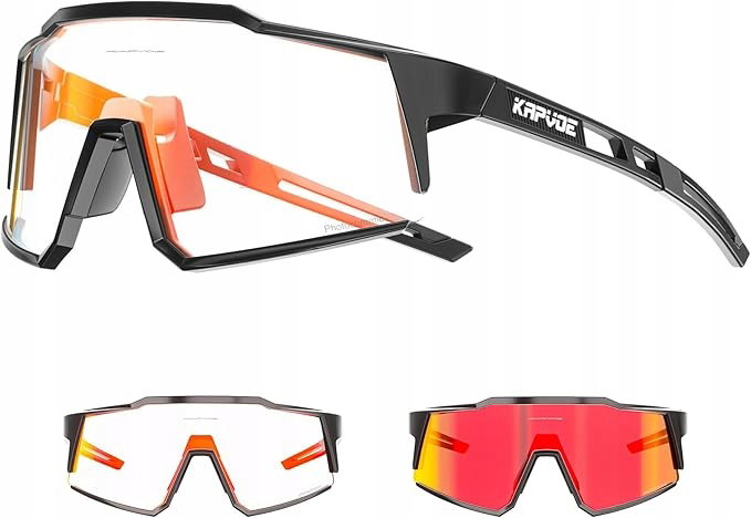 KAPVOE Okulary Fotochromowe Rowerowe TR90 UV400 MTB Czerwono-Czarne