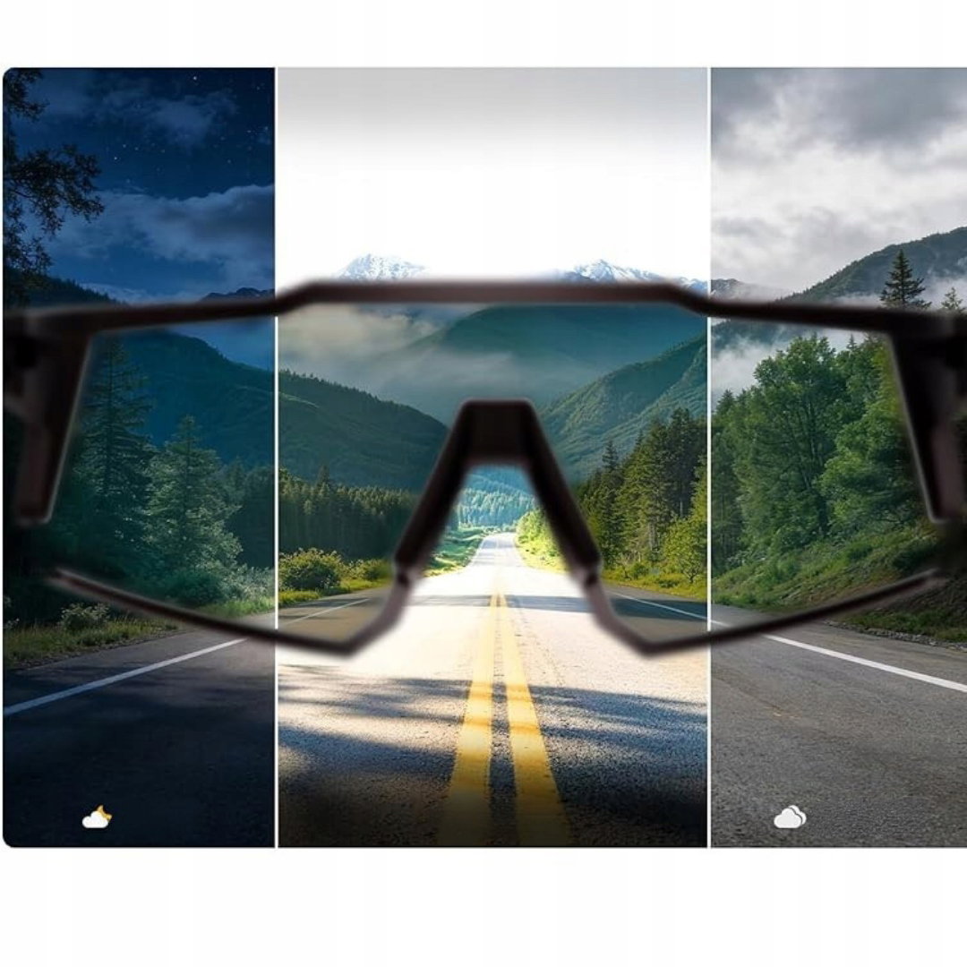 - Fotochromowe okulary rowerowe: wykorzystują technologię fotochromową, dzięki której soczewki automatycznie rozjaśniają się lub przyciemniają w zależności od intensywności promieniowania UV, zmieniając się z jasnych na ciemne w słonecznych warunkach i utrzymując optymalny poziom jasności dla ochrony oczu.