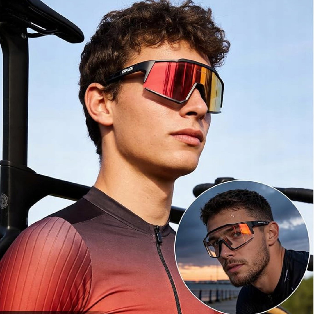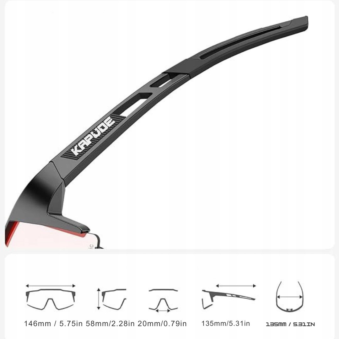 KAPVOE fotochromowe okulary rowerowe z oprawką TR90 to lekkie i wytrzymałe okulary sportowe zaprojektowane do ochrony wzroku podczas aktywności na świeżym powietrzu.