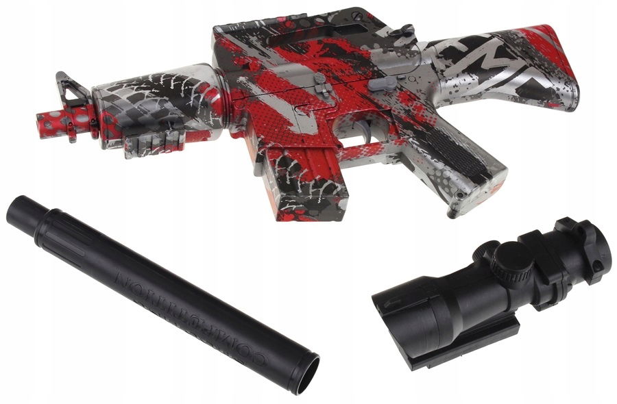 Karabin, strzelający w pełni bezpiecznymi kulkami żelowymi, urozmaici każdą zabawę i zaskoczy z pewnością niejednego przeciwnika. Pistolet zajmie dzieci na długie godziny, a także pozwoli im na zaaranżowanie wielu ciekawych zabaw, na które pomysł podsunie im wyobraźnia.