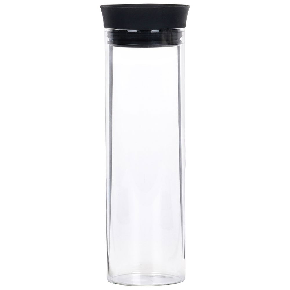 SZKŁO BOROKRZEMOWE - Dzbanek w formie zamykanej karafki do napojów. Wykonany z przezroczystego szkła borokrzemowego. Pokrywka wykonana z silikonu oraz stali nierdzewnej. Dzbanek ma pojemność 1 l i wymiary zewnętrzne 9 x 28 cm, średnica karafki wynosi 8 cm.