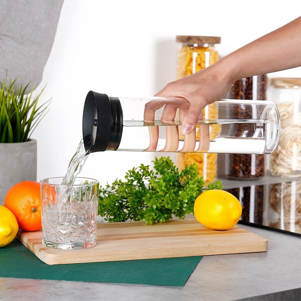 Karafka Szklana na Napoje z Pokrywką Niekapiącą Łatwe Nalewanie 1L Dzbanek
