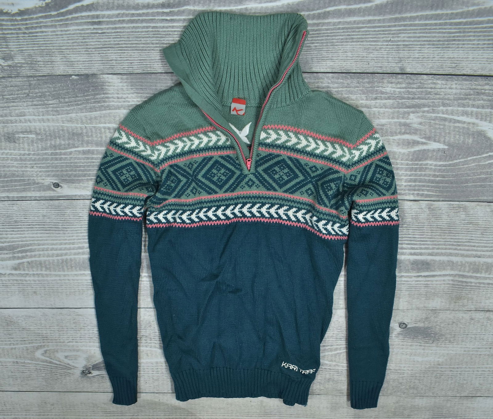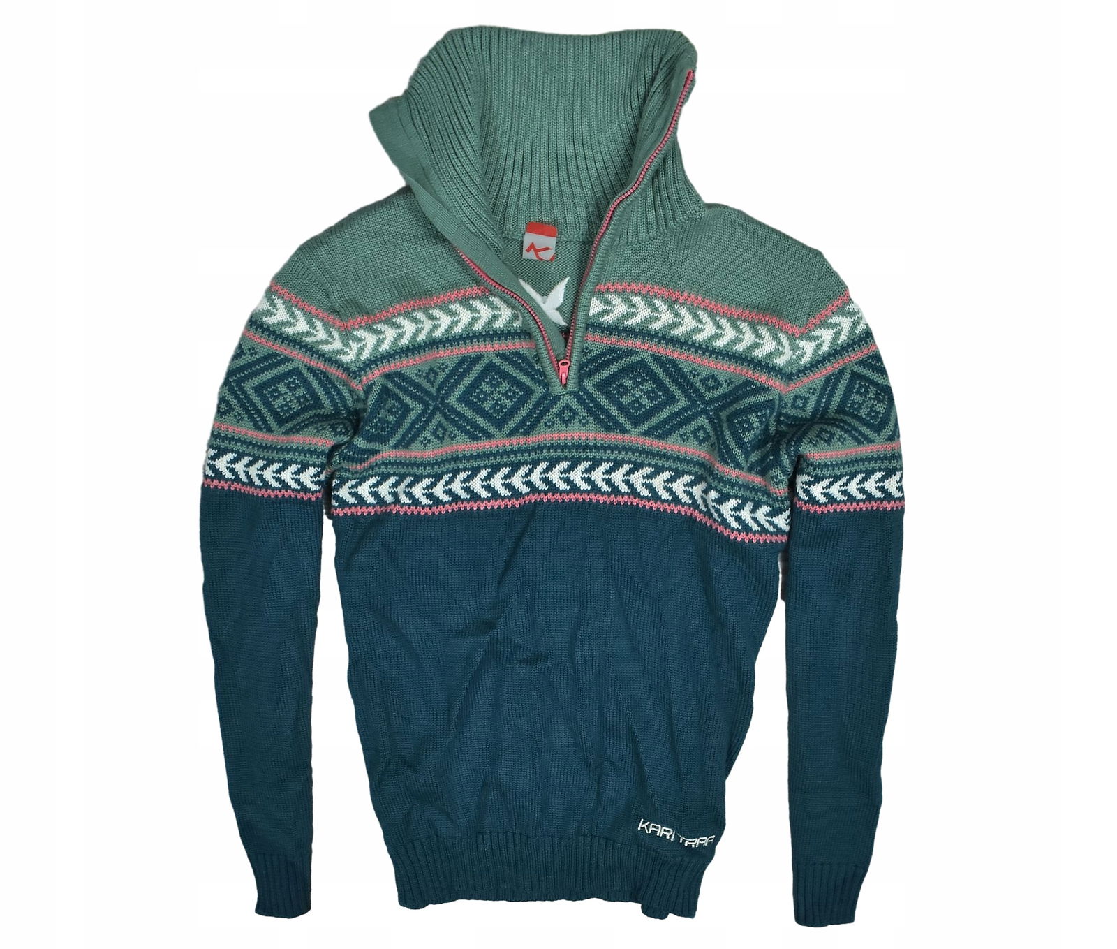 KARI TRAA Damski Wełniany Sweter Trekkingowy Zip Neck L