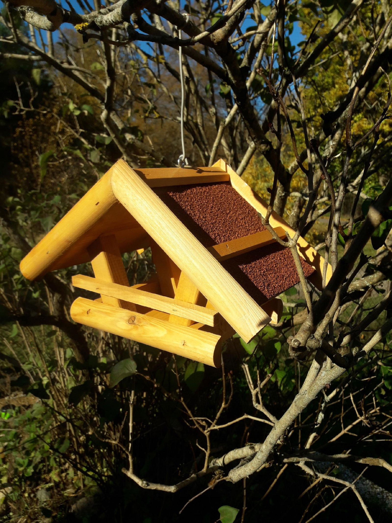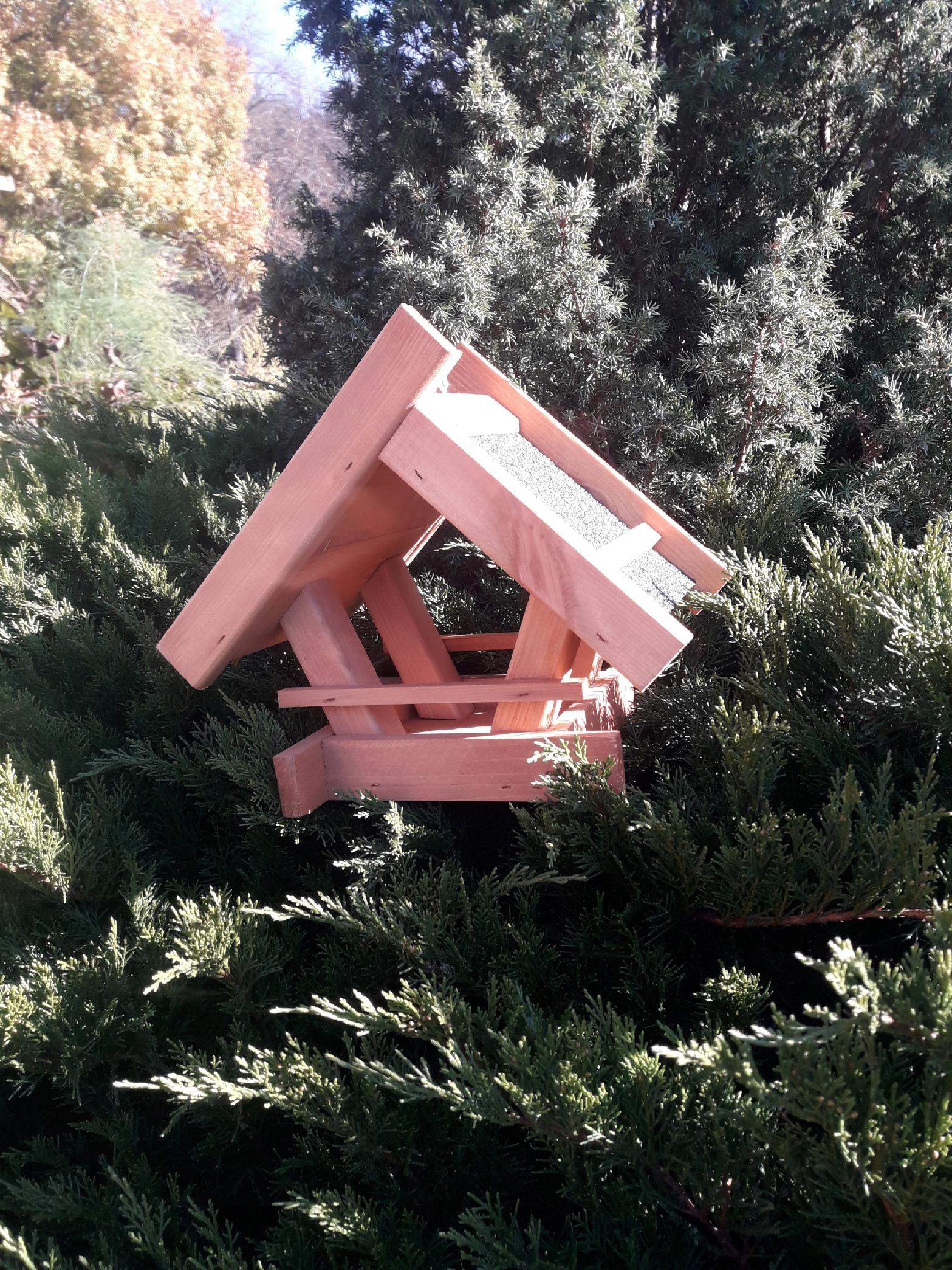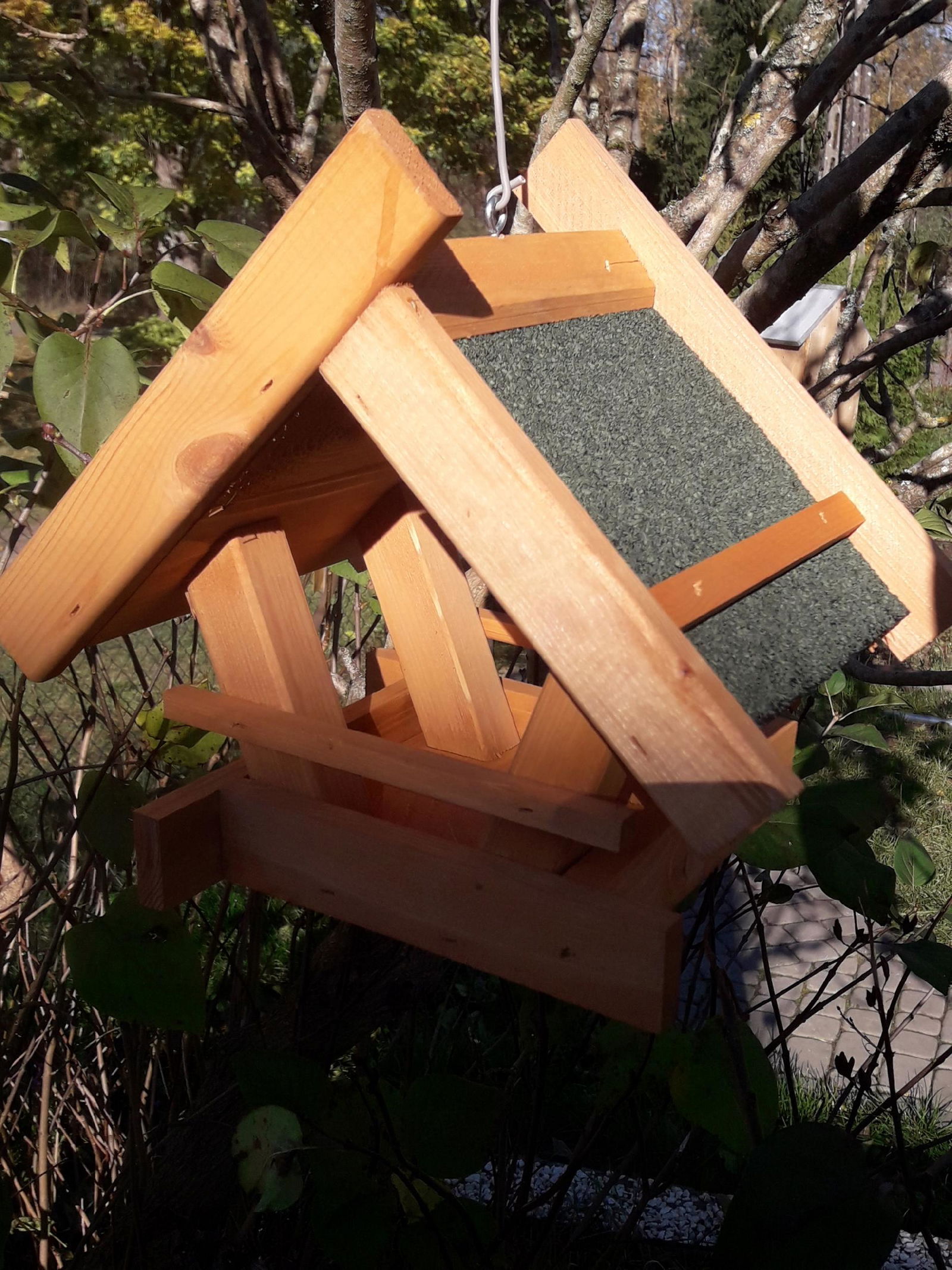 Duża powierzchnia dachu zabezpiecza ziarno przed zacinającym deszczem i śniegiem. Dach pokryty jest materiałem wodoodpornym i antypoślizgowym dzięki czemu czekające na swoją kolej ptaki mogą swobodnie przycupnąć i odpocząć.