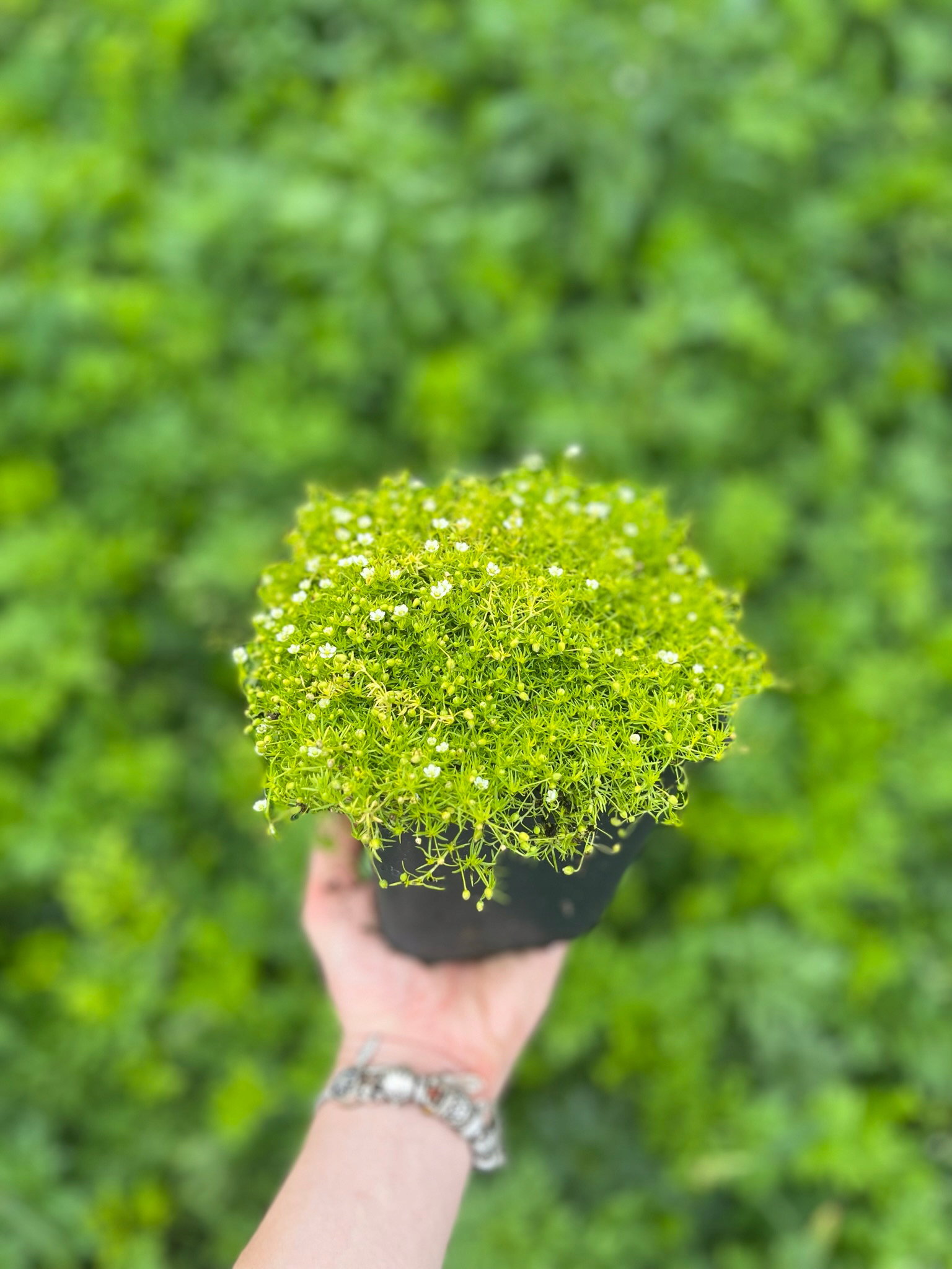 'Lime Moss' to niezwykła, niska bylina zadarniająca, przypominająca poduszeczkowy mech o intensywnie limonkowym zabarwieniu. Tworzy gęsty, zwarty dywan, który doskonale sprawdza się jako alternatywa dla trawnika, roślina okrywowa lub ozdoba skalniaków. Zimą zachowuje kolor, a latem uroczo kwitnie drobnymi, białymi kwiatkami. To roślina idealna do tworzenia jasnych akcentów w ogrodzie. ??