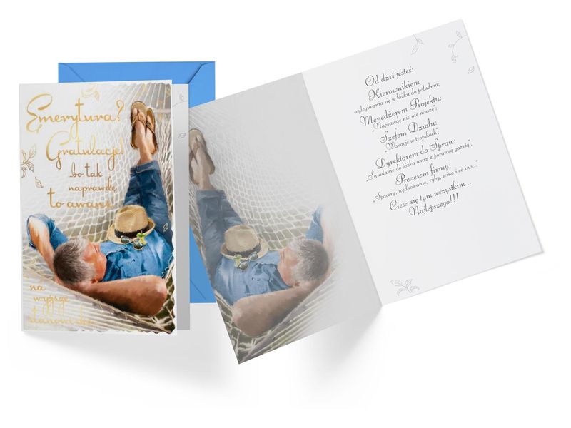 Karnet / Kartka "Gratulacje z okazji przejścia na emeryturę, dla mężczyzny", PR-044