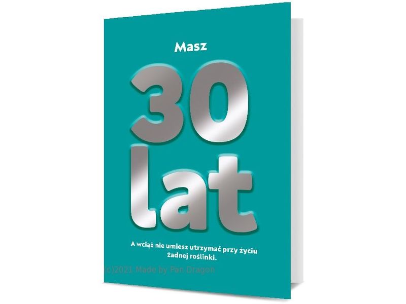 Kartka na Urodziny z nadrukiem "z okazji 30 urodzin" w kolorze zielonym o rozmiarze MEGA (340 mm x 480 mm - wymiar po złożeniu) - rozkładana. Kartki to świetny pomysł na piękną pamiątkę! Każda kartka posiada sztywną kopertę w komplecie. W środku kartki znajdują wydrukowane teksty. Zrób super wrażenie wręczając nietypową kartkę solenizantowi.