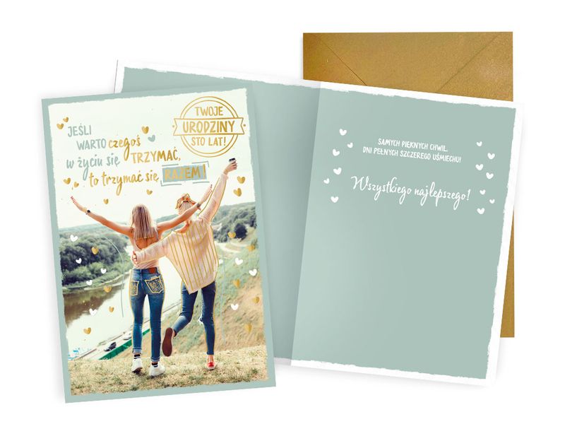 Kartka na Urodziny - Passion Premium z nadrukiem "Twoje urodziny, Sto Lat! (koleżanki)" o wymiarach B6 (16,6 cm x 11,7 cm po złożeniu). Kartki z serii Passion Premium to świetny pomysł na piękną pamiątkę, każda kartka jest zdobiona przynajmniej dwoma rodzajami uszlachetnień - metaliczne lub perłowe folie, brokat, tłoczenie itp. - tyle piękna w takim drobiazgu (uzależnione od rodzaju kartki)! Każda kartka Passion Premium ma kolorowe wnętrze z tekstem wyjątkowych życzeń i grafiką, w komplecie jest także dopasowana kolorystycznie koperta.