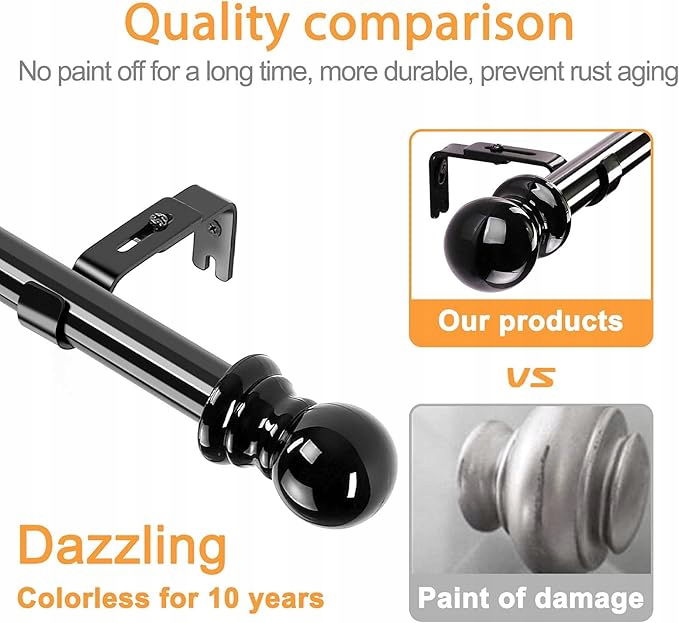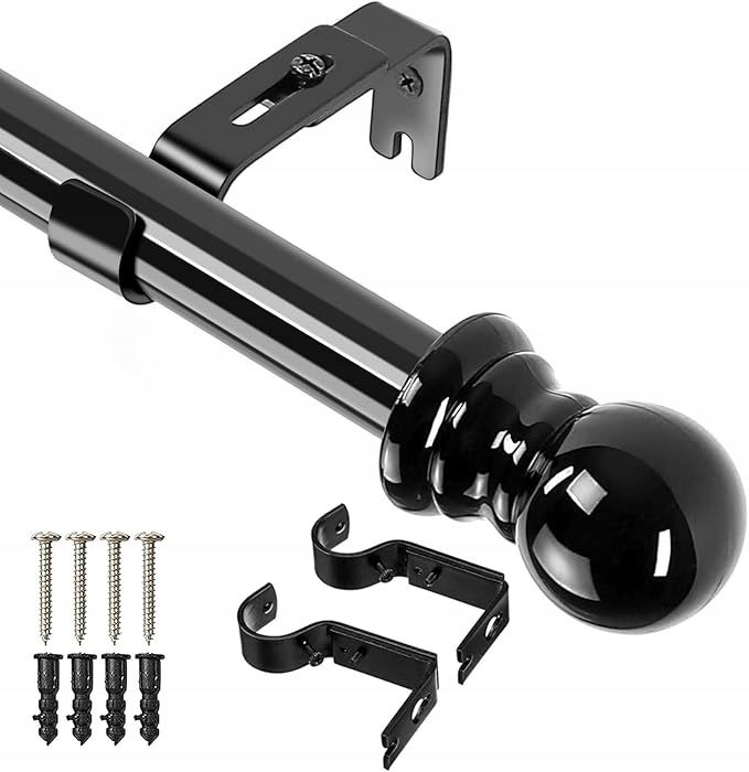 Karnisz Pojedynczy Końcówka Okrągła Czarny 83 - 135 cm