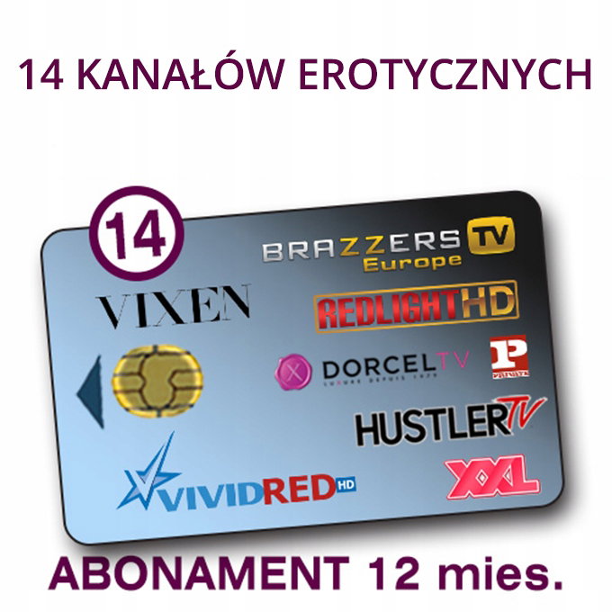 Superchic 14+ karta z 14 kanałami erotycznymi: Redlight HD, Hustler HD , Private HD, Dorcel HD, VIVID Red HD, Brazzers Tv , XXL, VIVID Touch, Blue Hustler, Hustler Tv, Dorcel TV (wersja Astra), Dorcel XXX, Vivid TV Europe, Vixen na okres 12m
