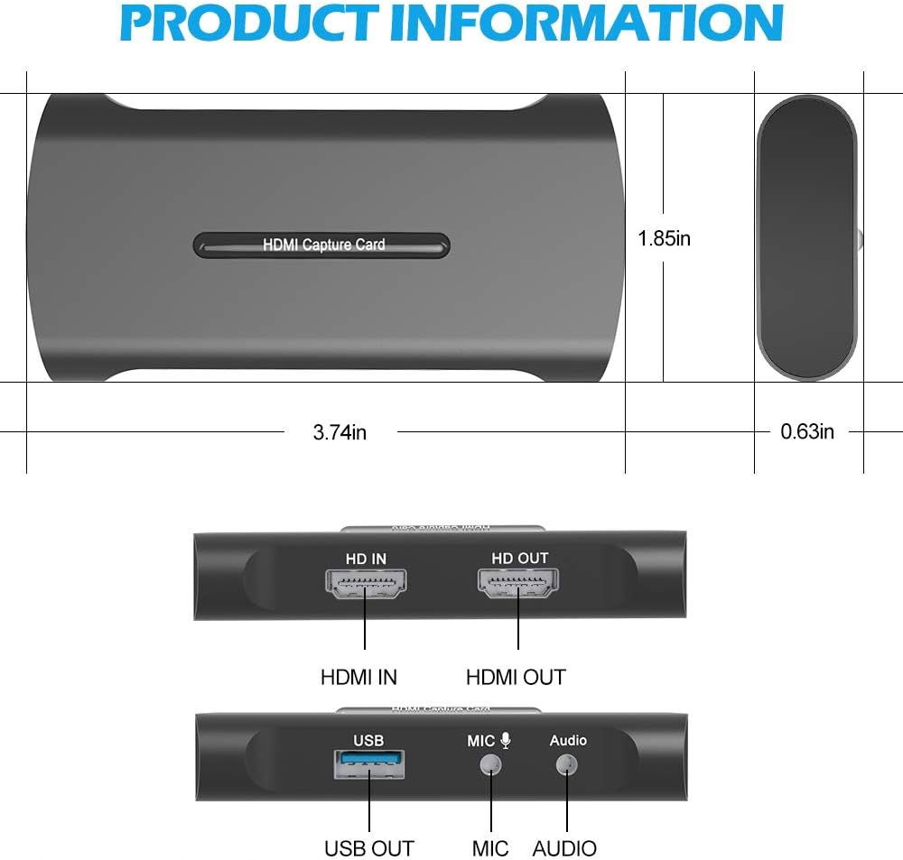 - Technologia Plug and Play, łatwe w użyciu: to narzędzie jest Plug and Play, bez sterownika ani zewnętrznego zasilania, mała karta do przechwytywania bezpośrednio prowadzi kabel USB, aby uniknąć niepotrzebnego podłączenia, dzięki czemu możesz wygodnie udostępniać swoją rozgrywkę na platformach streamingowych, takich jak Twitch lub Youtube.