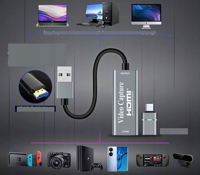 - 【Szeroka kompatybilność】: Ta karta przechwytywania HDMI na USB łatwo łączy DSLR, kamerę lub kamerę sportową, PS5/4, smartfony, Switch, XBOX z komputerem lub Mac, kompatybilna z Windows/Android/Mac OS.