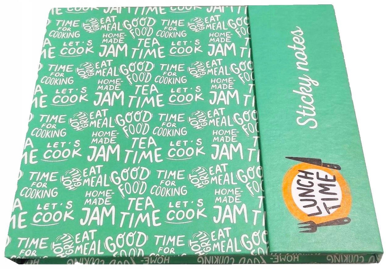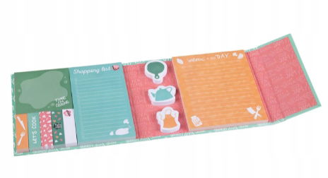 Notes w twardej oprawie z karteczkami samoprzylepnymi o tematyce kuchennej do organizacji planu dnia. Niezastąpiony zestaw w domu. Organizer zamykany na magnes.