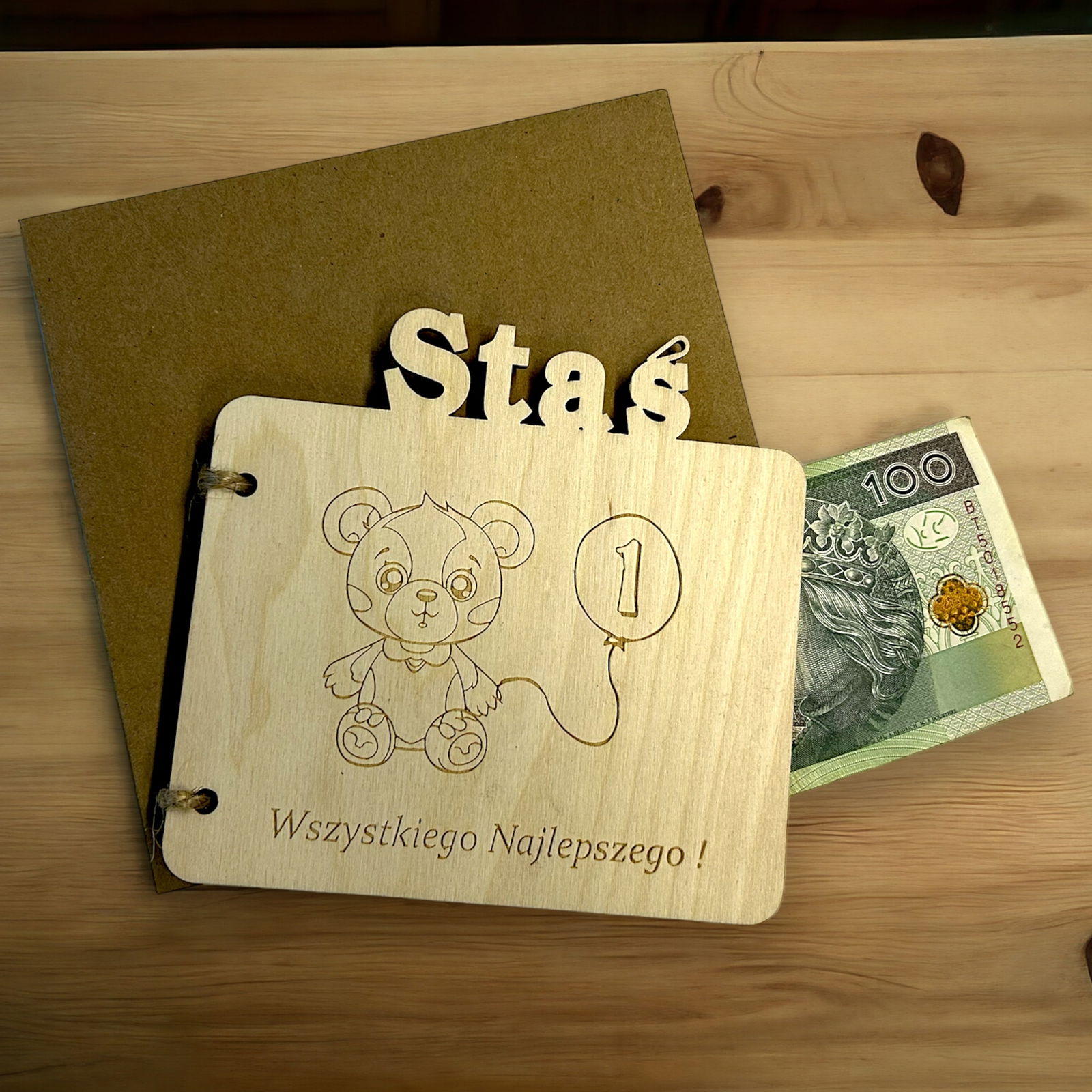 KARTKA DREWNIANA URODZINY ROCZEK prezent pamiątka imie + koperta RP150