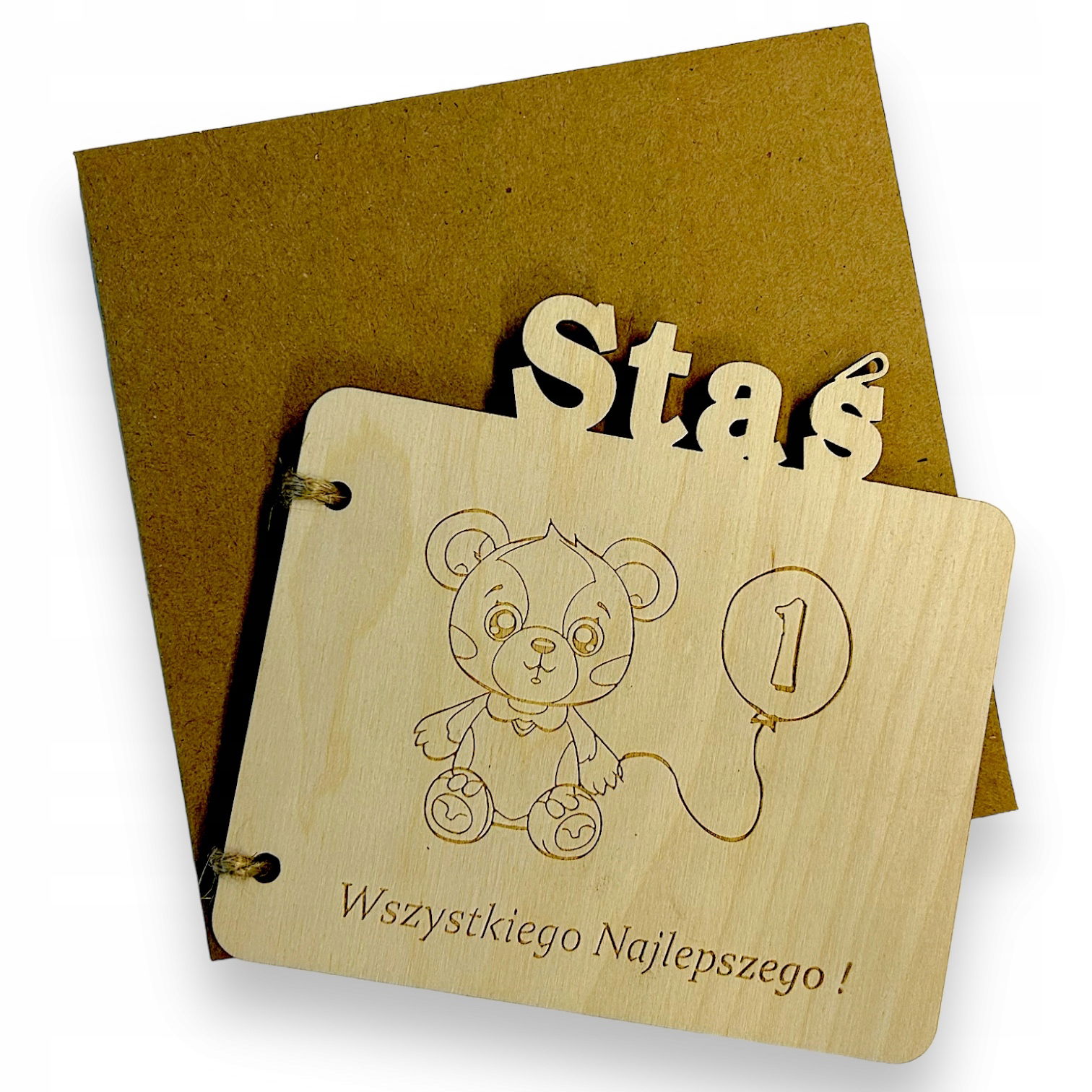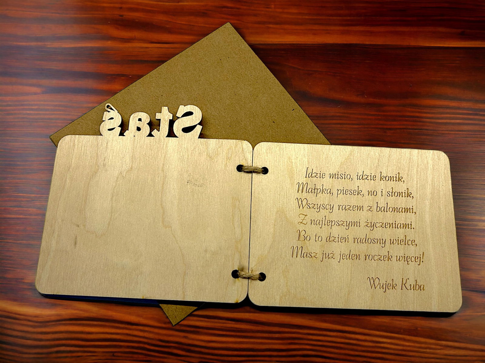 KARTKA DREWNIANA URODZINY ROCZEK prezent pamiątka imie + koperta RP150