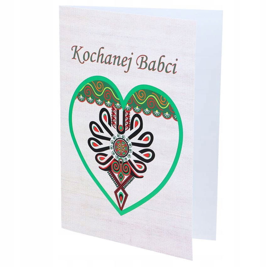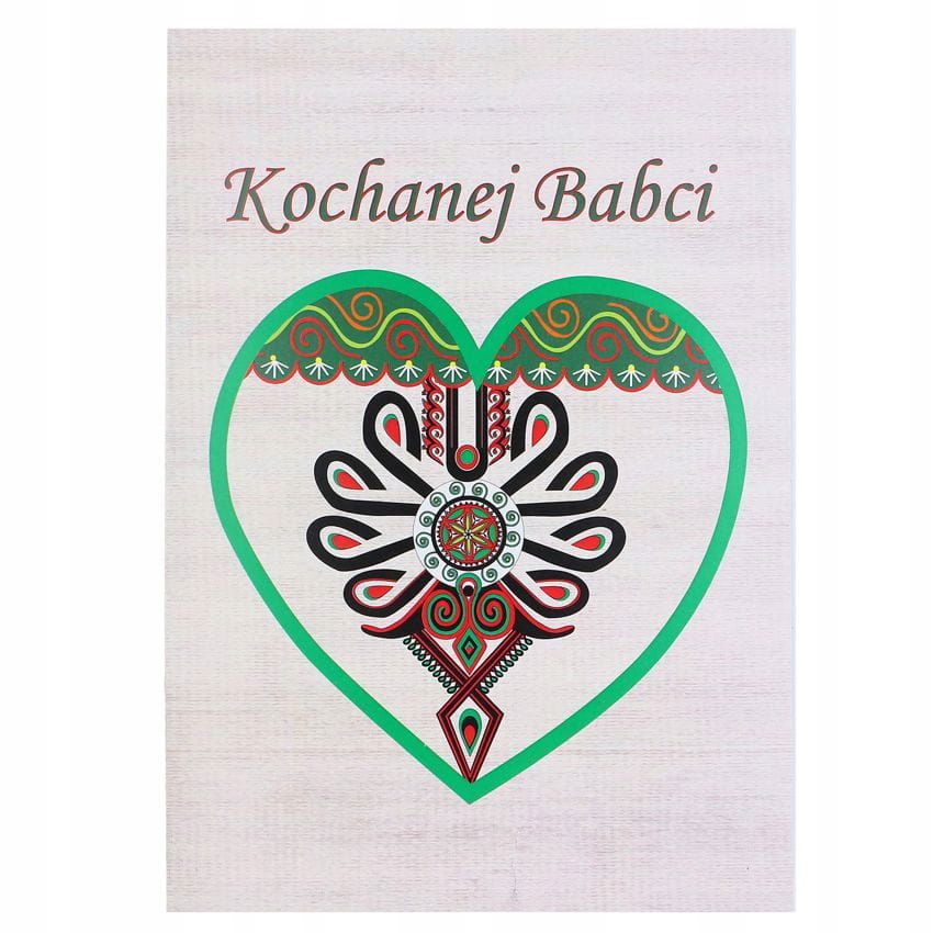 Kartka ze wzorem folku ludowego dla ukochanej Babci. Kartka z kolorowym wzorem w kształcie serca inspirowanym motywem podhalańskim. Zadrukowana jest na zewnątrz, wnętrze bez zadruku specjalnie na indywidualne życzenia. W komplecie: kartka z kopertą w kolorze białym.