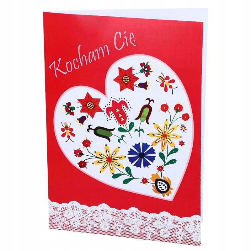 Kartka folk kociewska. Kartka z kolorowym wzorem inspirowanym motywem kociewskim. Zadrukowana jest na zewnątrz, wnętrze bez zadruku specjalnie na indywidualne życzenia. W komplecie: kartka z kopertą w kolorze białym. Całość w kociewskich barwach ludowych z Kociewia.