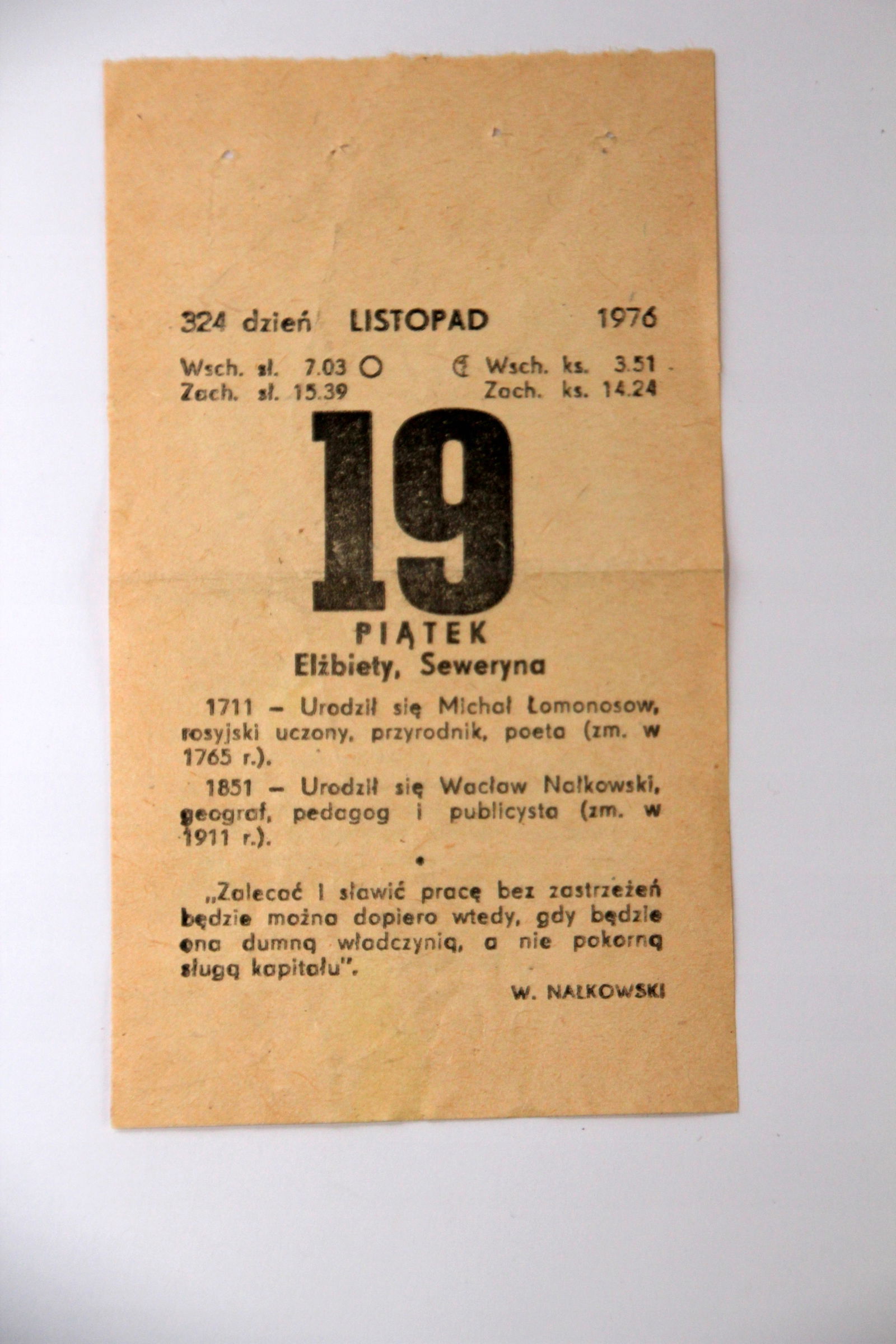 Ciekawy prezent urodzinowy - kartka z kalendarza 19 listopada 1976 r.