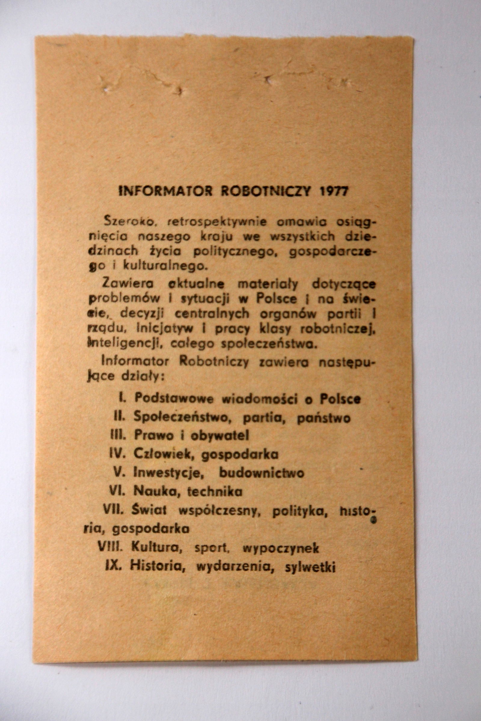 Ciekawy prezent urodzinowy - kartka z kalendarza "Informator robotniczy 1977".