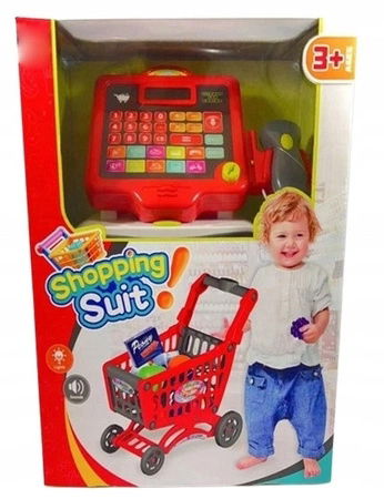 Zestaw zawiera czerwony wózek supermarketowy oraz realistyczną kasę, która zaskoczy każde dziecko swoimi efektami świetlnymi i dźwiękowymi. Dzięki temu mali sprzedawcy poczują się, jakby prowadzili prawdziwy sklep, z możliwością skanowania produktów, wydawania reszty i obsługi klientów.