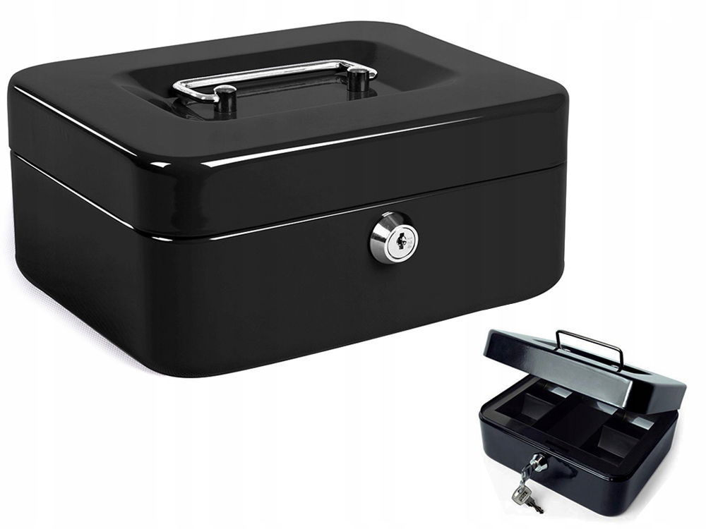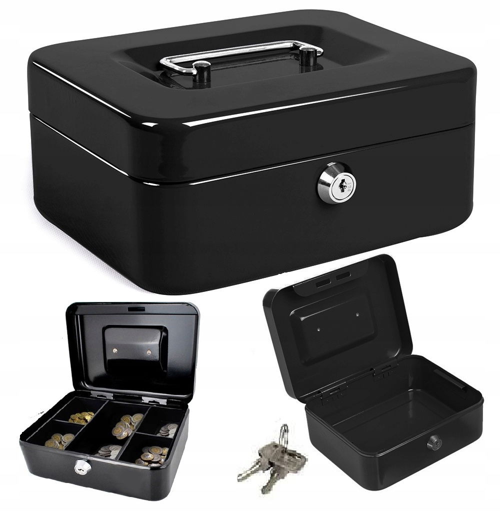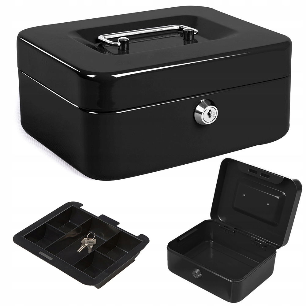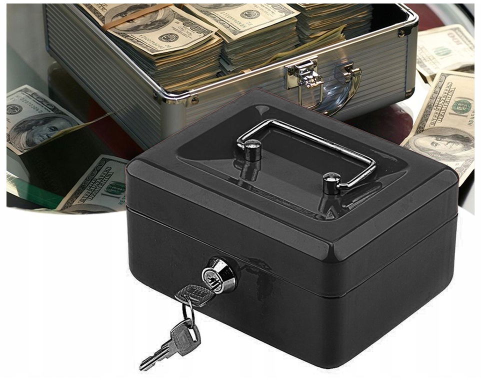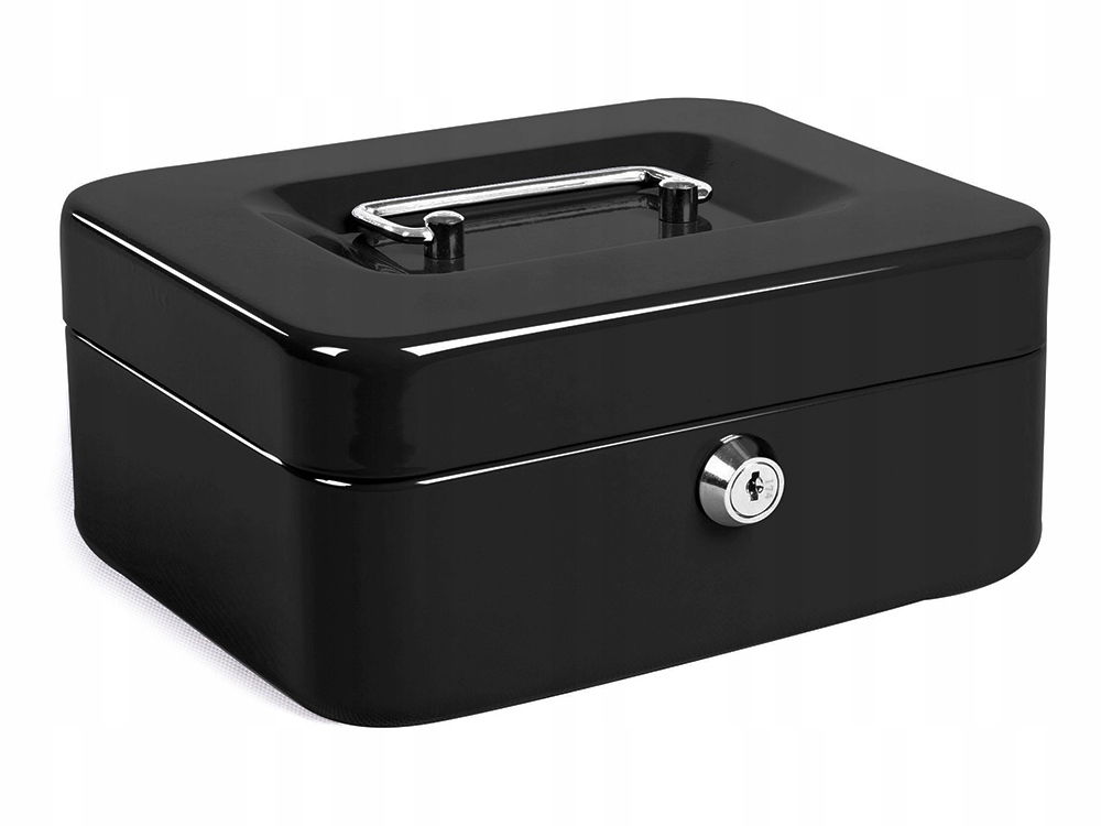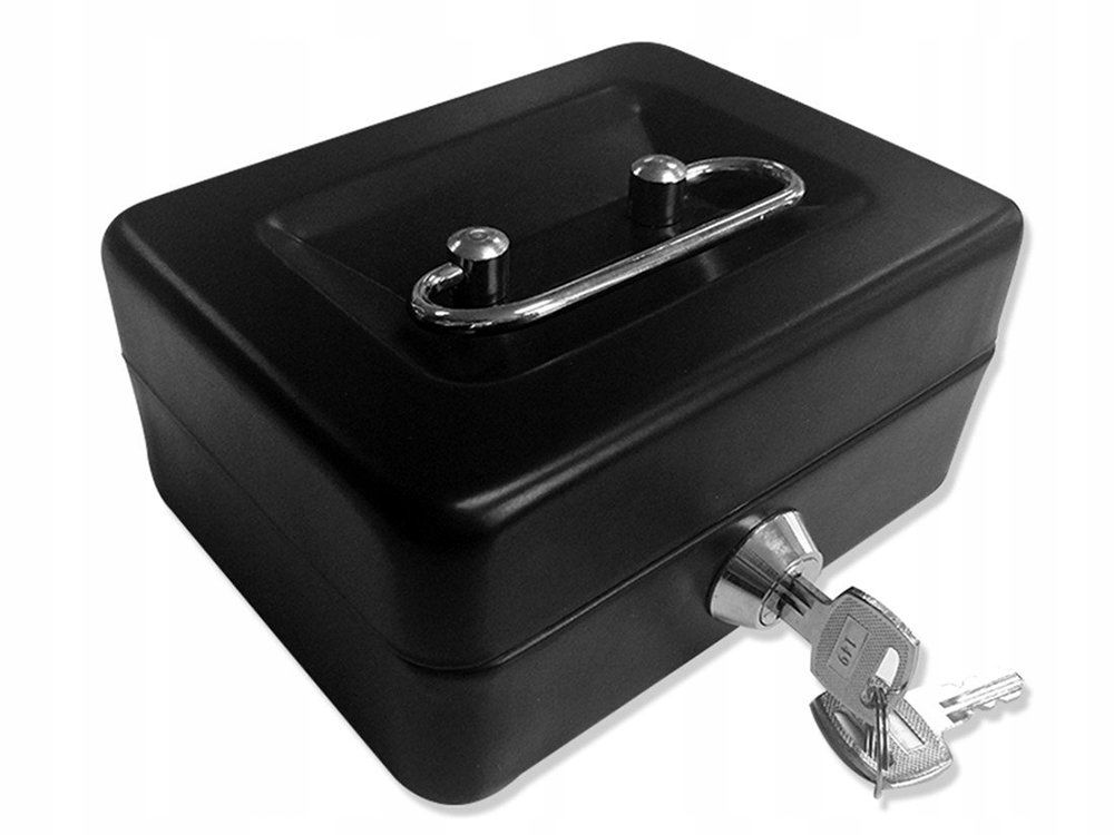 KASETKA METALOWA SEJF NA PIENIĄDZE KLUCZ DOKUMENTY 2 KLUCZE 16 x 20 CZARNA