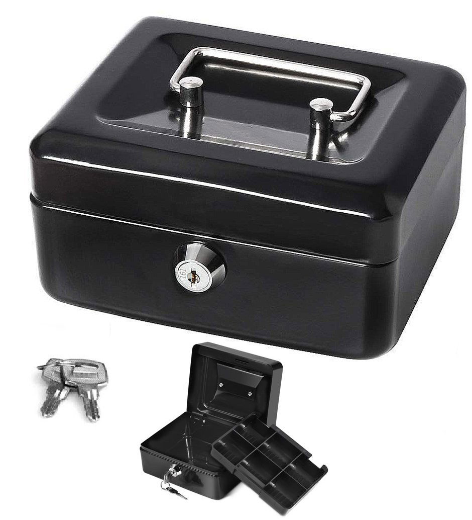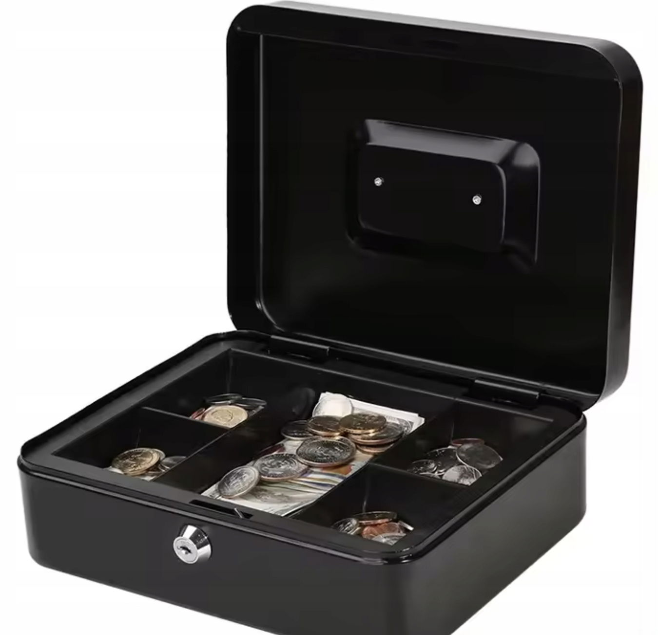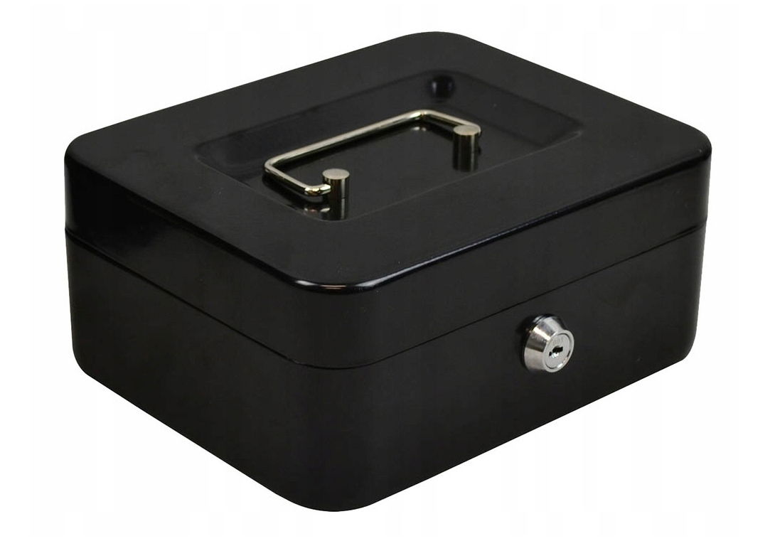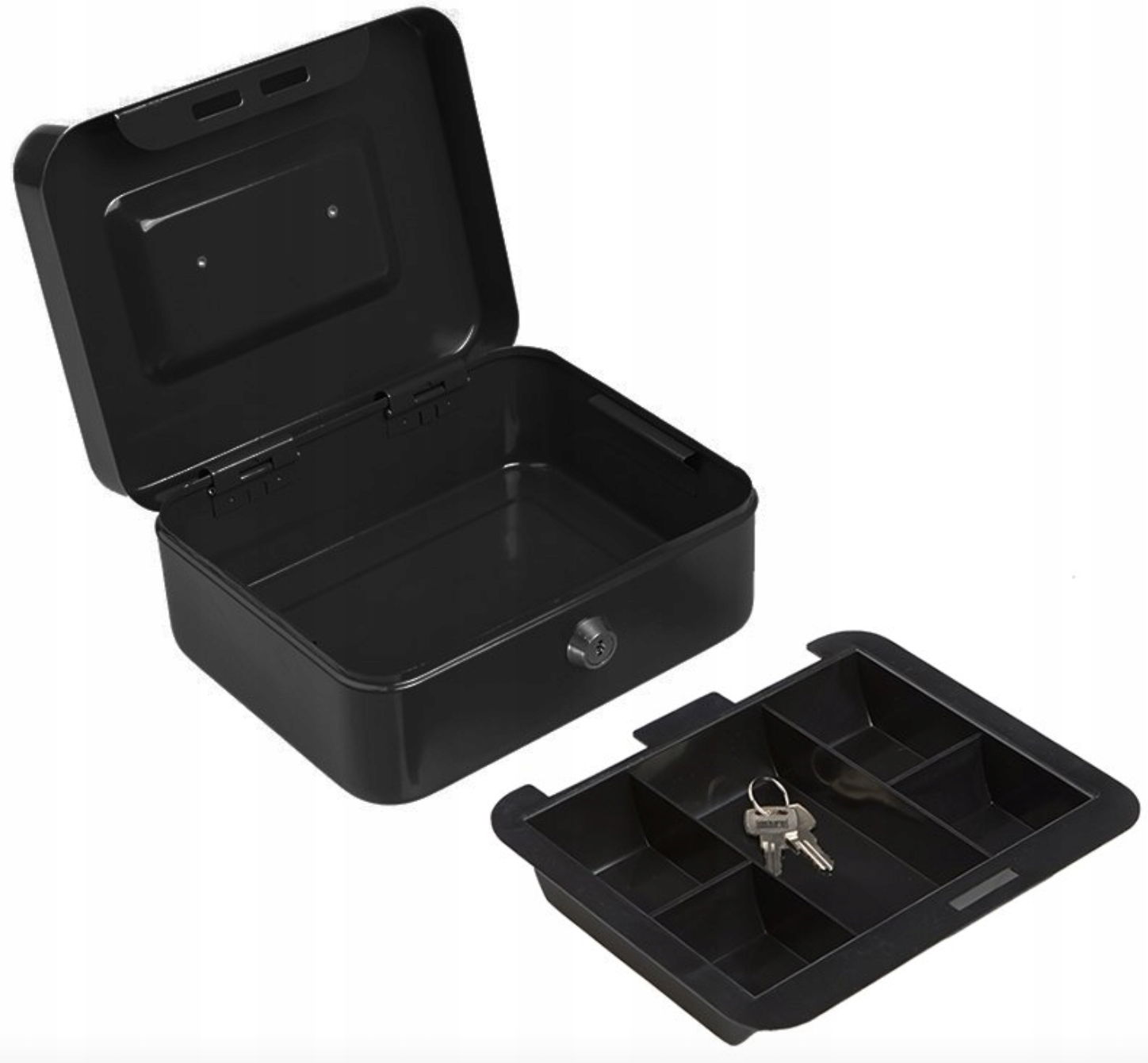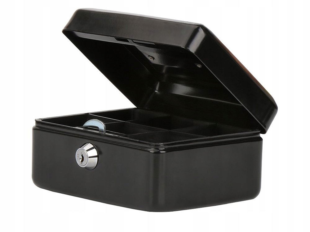 KASETKA METALOWA SEJF NA PIENIĄDZE KLUCZ DOKUMENTY 2 KLUCZE 16 x 20 CZARNA