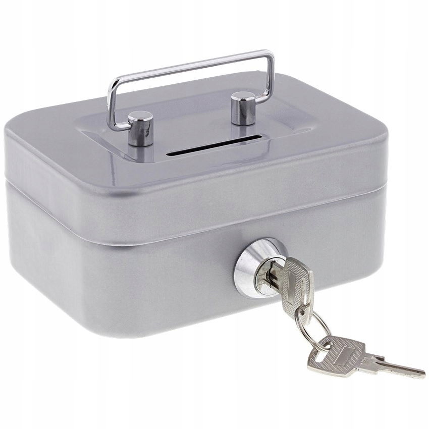 Metalowa kasetka/sejf która pozwala na bezpieczne przechowywanie pieniądze. Kasetka ta zamykana jest na klucz - w zestawie 2 kluczyki. W górnym wieku posiada otwór na wrzucanie monet oraz rączkę do jej przenoszenia.