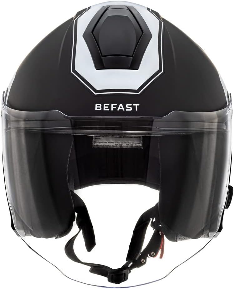 WŁĄCZONY INTERKOM: Kask Befast Jet jest lekki, kompaktowy i wygodny, ze zintegrowanym systemem Bluetooth, idealny do ciągłego połączenia podczas codziennych wycieczek na motocyklu lub skuterze, aby cieszyć się doskonałą jakością dźwięku podczas słuchania muzyki i otrzymywania wskazówek z nawigatora GPS i zarządzaj swoim smartfonem w sposób całkowicie bezpieczny podczas jazdy.