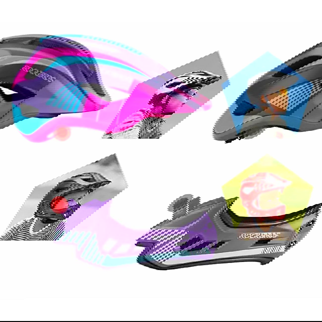 Kask rowerowy dziecięcy z odpinaną szczęką rozmiar M - fioletowo-różowy