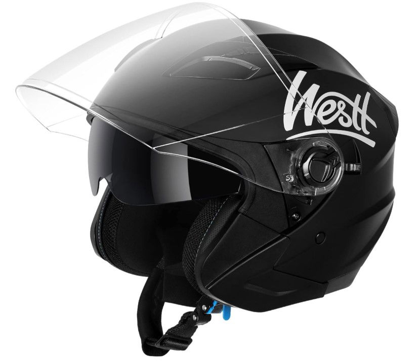 Kaski motocyklowe Westt Open Face to kaski typu jet dla mężczyzn i kobiet, zatwierdzone przez DOT, idealne do skuterów i motocykli. Zapewniają profesjonalny stopień bezpieczeństwa (DOT FMVSS-218 i ECE 22.05). Charakteryzują się aerodynamiczną skorupą ABS, EPS o wielu gęstościach oraz systemem wentylacji z czterema regulowanymi otworami. Posiadają komfortowe wnętrze z wyjmowaną i nadającą się do prania wyściółką. Dzięki systemowi podwójnej osłony przeciwsłonecznej (zewnętrzny daszek odporny na zarysowania i zintegrowana osłona przeciwsłoneczna) jazda jest bezproblemowa w dzień i w nocy.