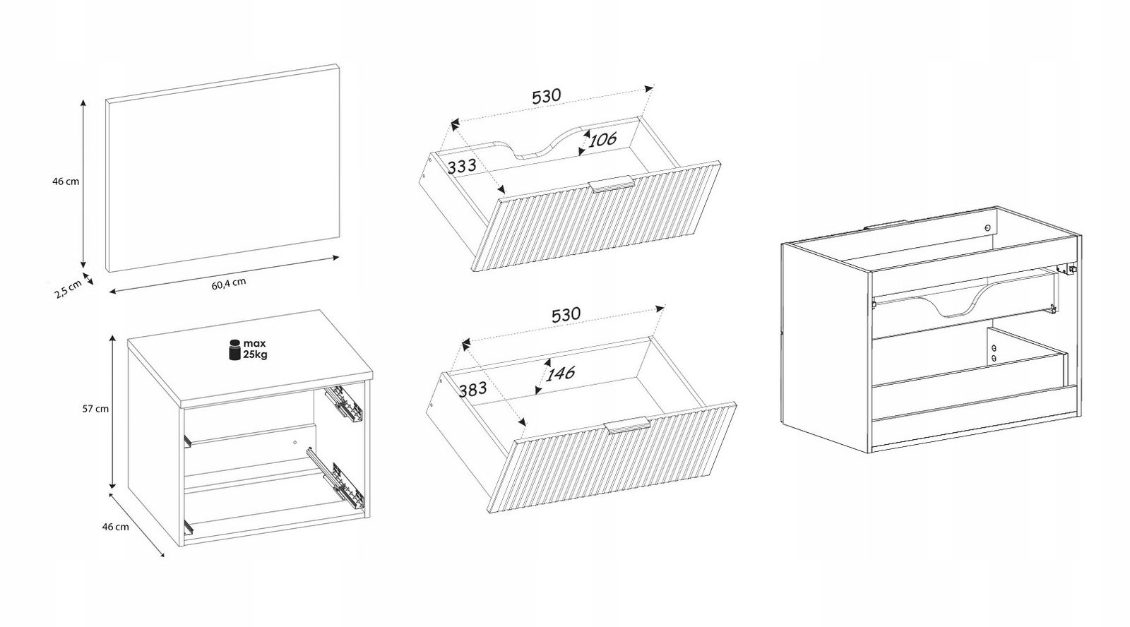 Szafka ADEL CASHMERE 82-60 z umywalką i blatem - wnętrze: