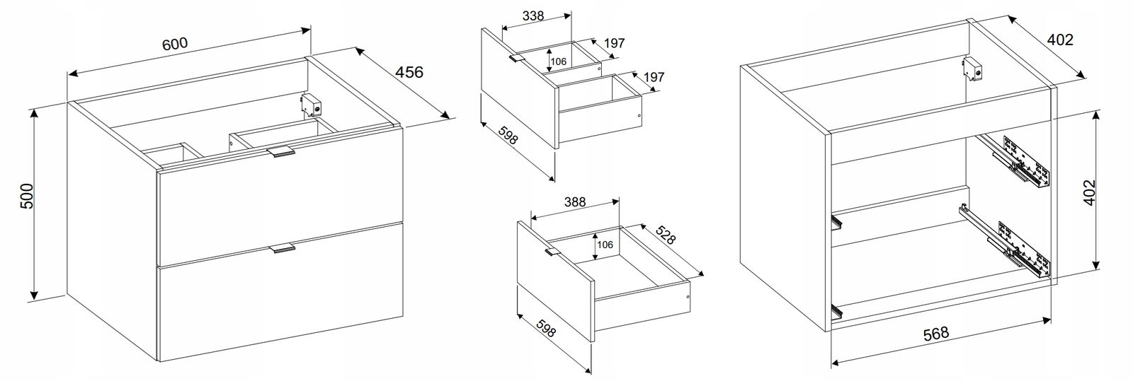 Dzięki zastosowaniu systemu cichego domykania, korzystanie z szafek i szuflad staje się wyjątkowo komfortowe, co dodatkowo podkreśla dbałość o detale w codziennym użytkowaniu. Przemyślana konstrukcja szafek, o głębokości 46 cm, zapewnia funkcjonalność i dużą pojemność, co czyni je praktycznym rozwiązaniem dla każdej łazienki.